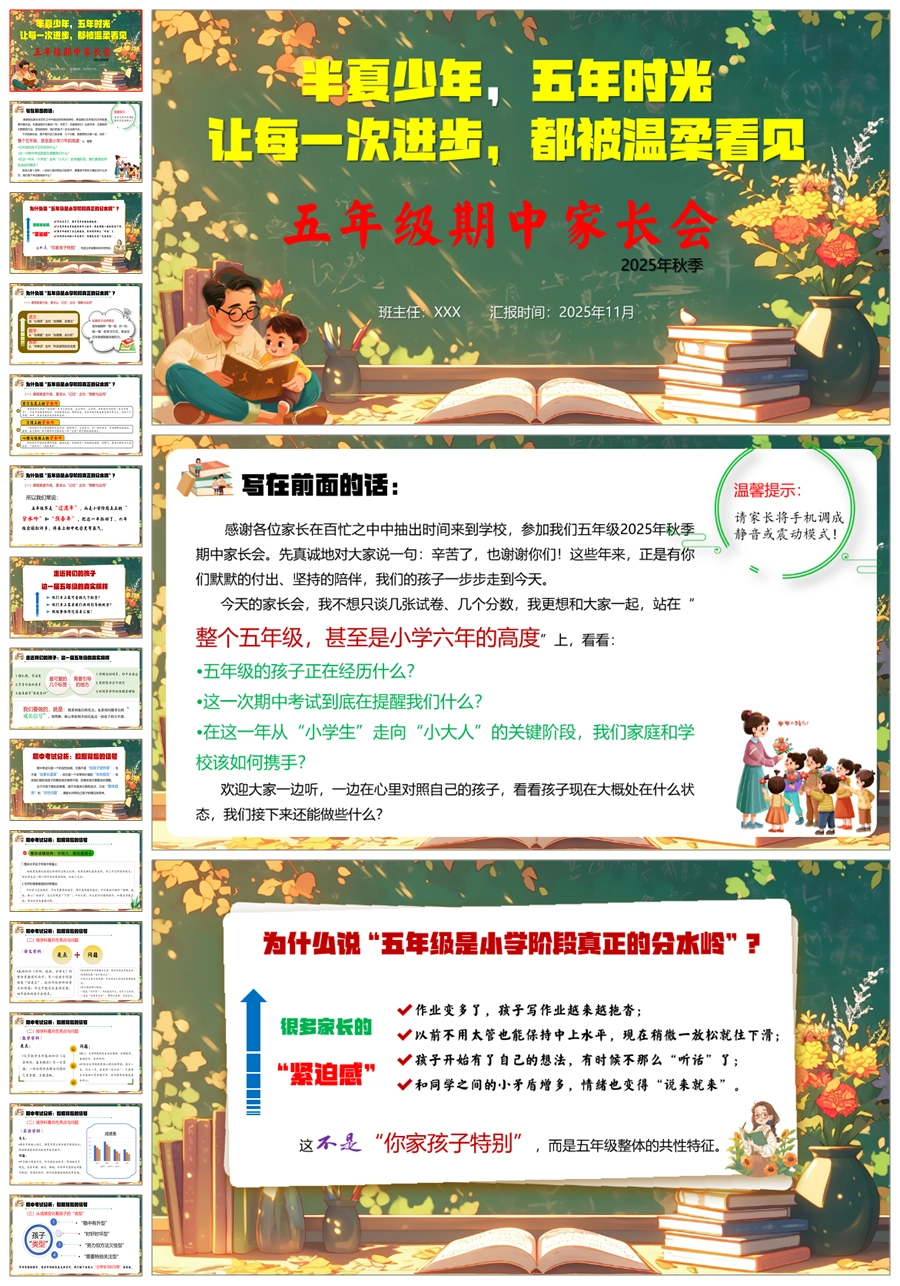 【5931】【五年级】【秋季上】【期中】家长会《半夏少年,五年时光》PPT课件+发言稿