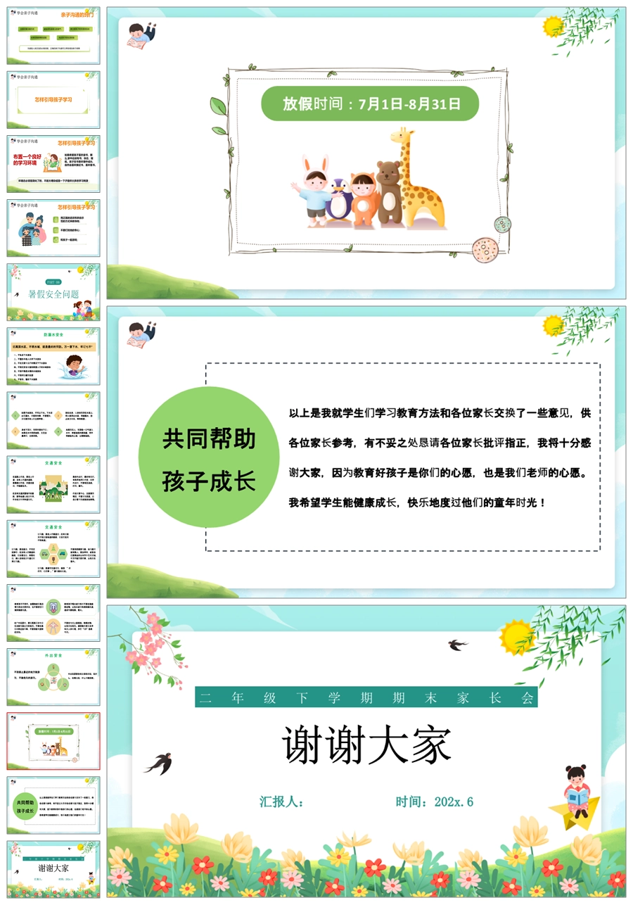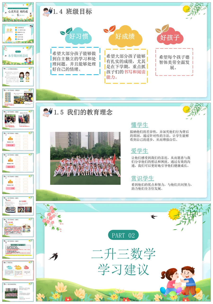 【5939】二年级下学期数学《心灵共话 相约成长》期末家长会PPT课件+发言稿