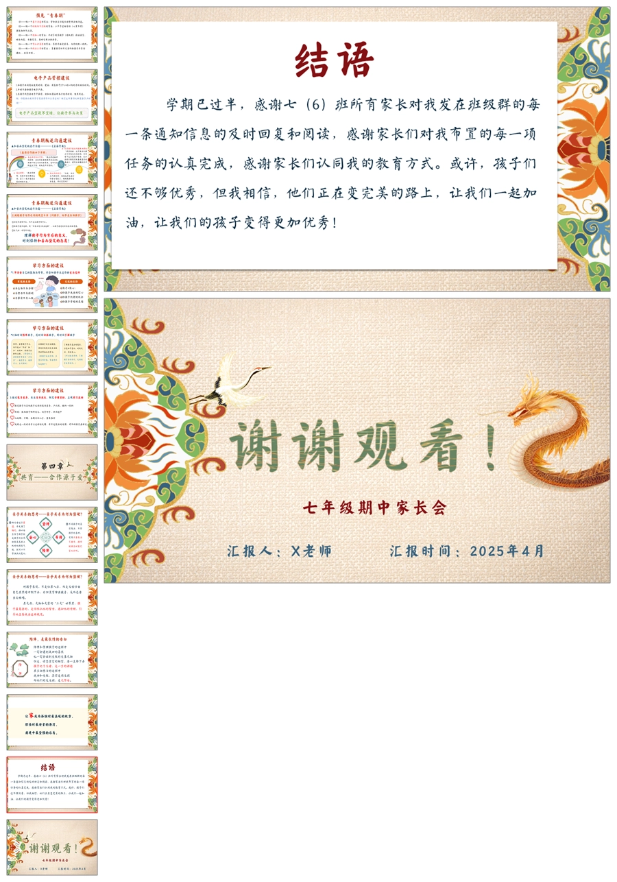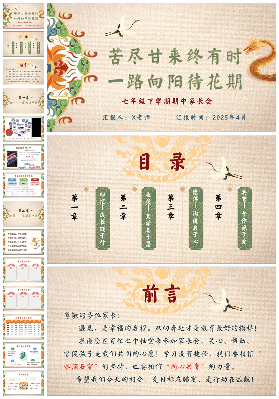 【5936】初一七年级下学期期中家长会《苦尽甘来终有时》PPT课件+发言稿