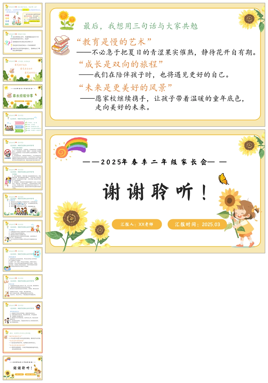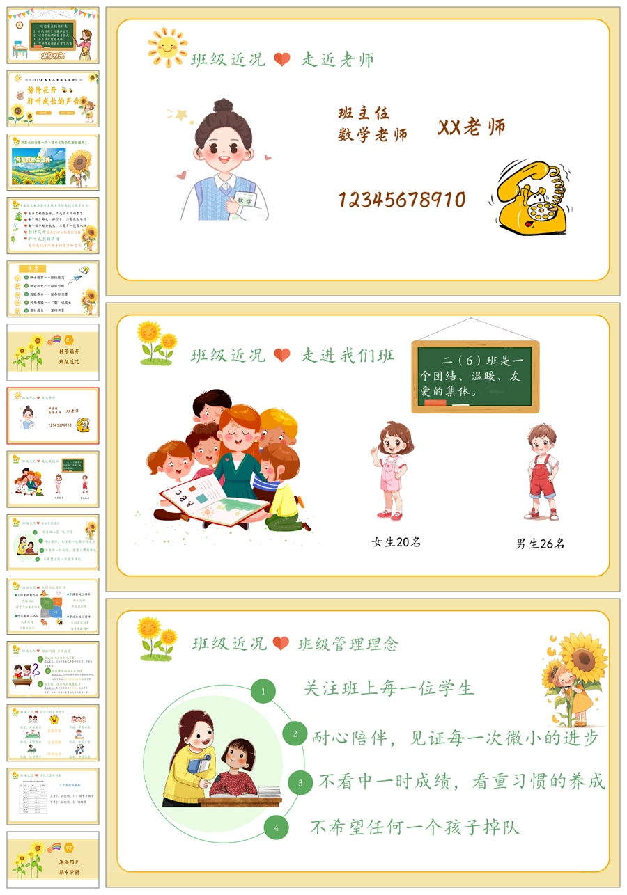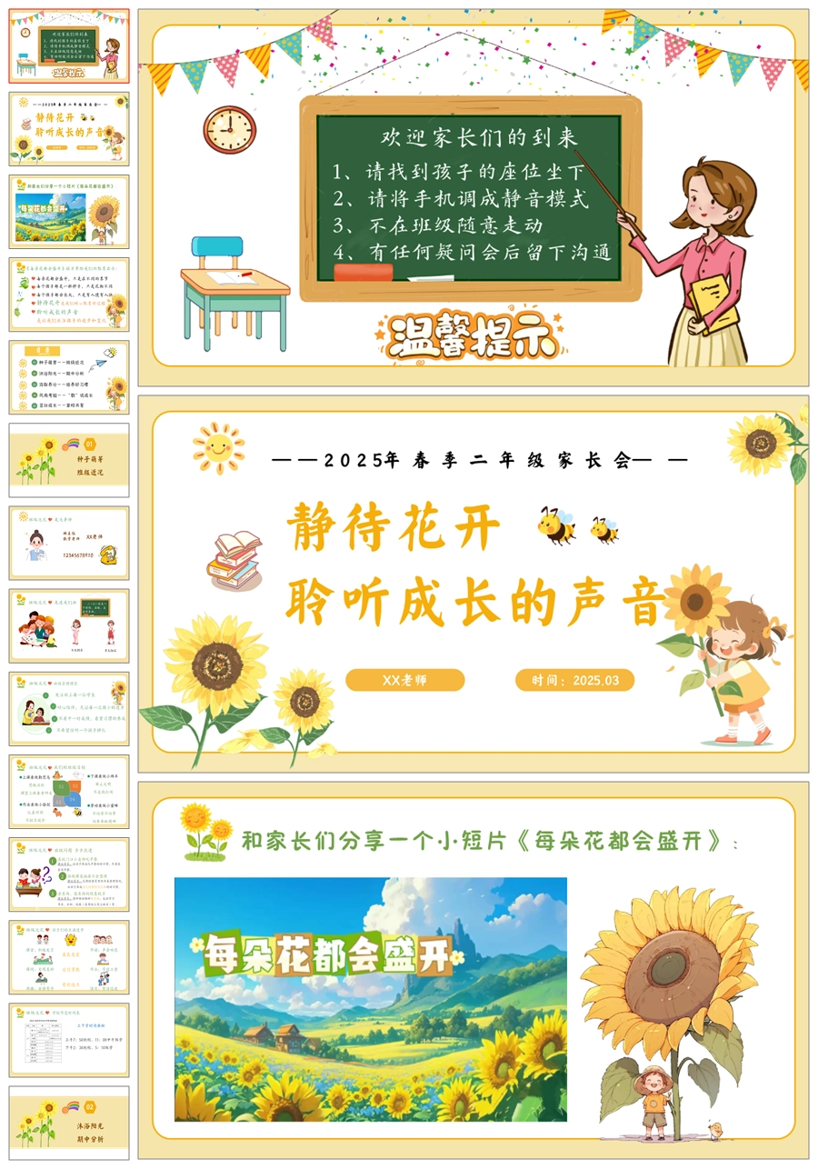 【5937】二年级数学家长会《静待花开》PPT课件+发言稿