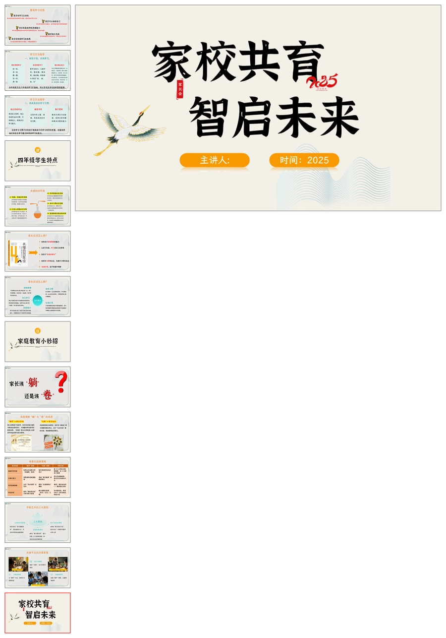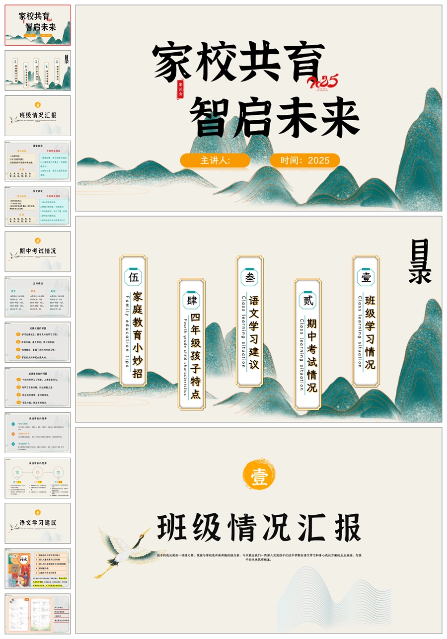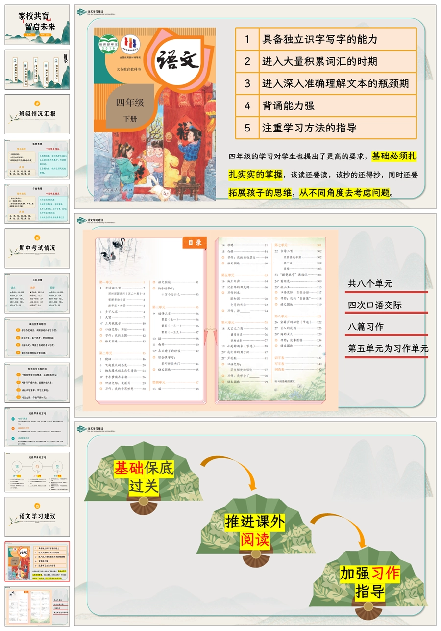【5945】四年级语文下册期中家长会《家校共育 智启未来》PPT课件+发言稿