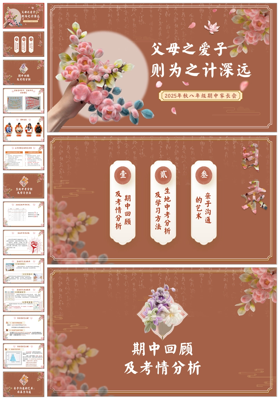 【5916】【初二】【八年级】【通用】秋季期中家长会《父母之爱子,则为之计深远》PPT课件+发言稿