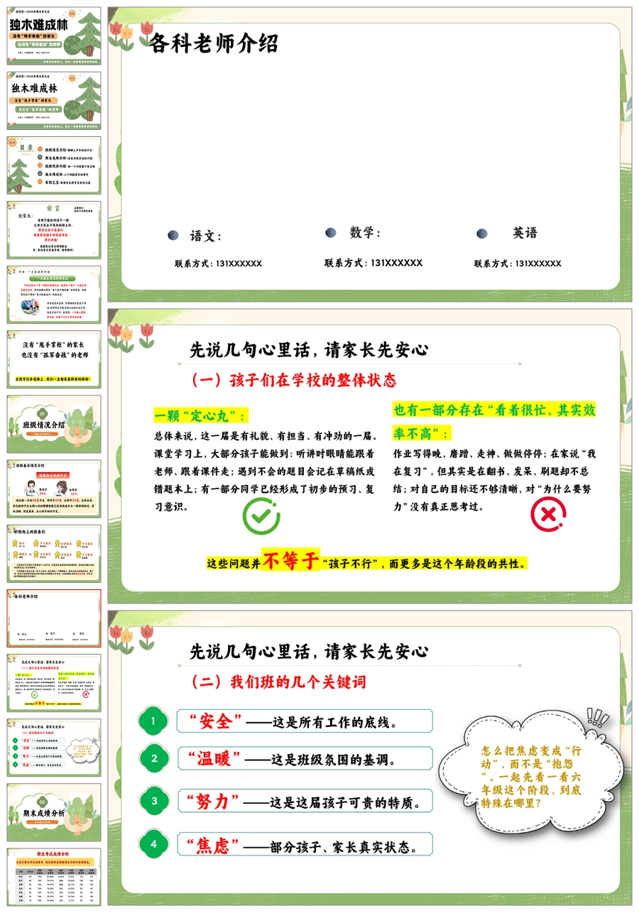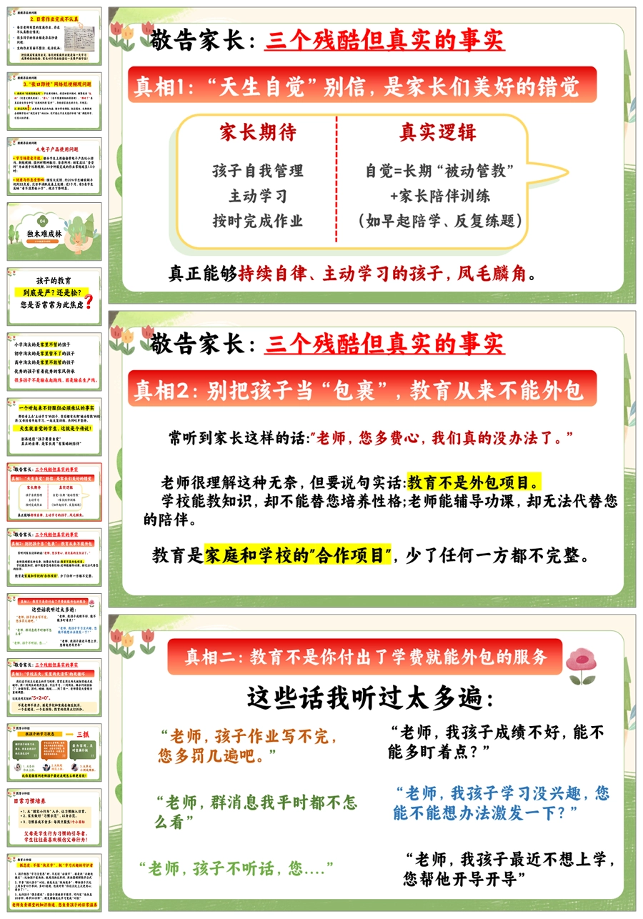 【5944】中学通用家长会期末家长会《没有甩手掌柜的家长》PPT课件+发言稿