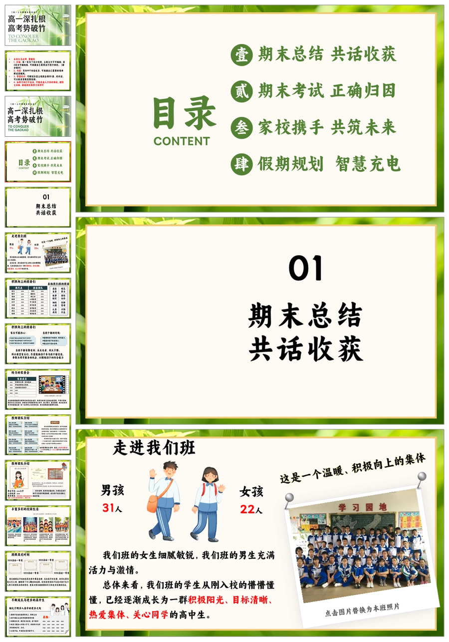 【5947】【高一上期末家长会】《高一深扎根 高考势破竹》PPT课件+发言稿