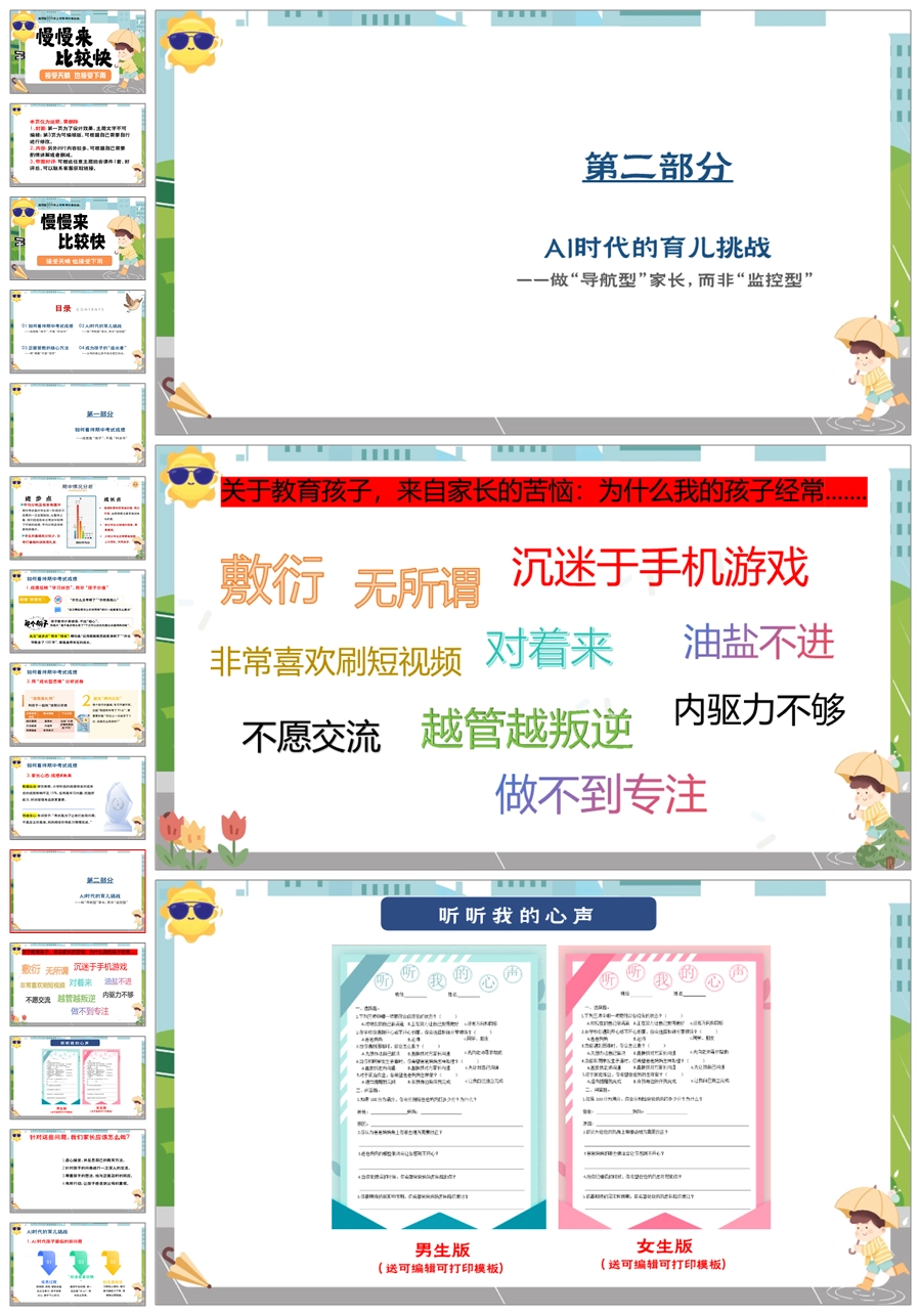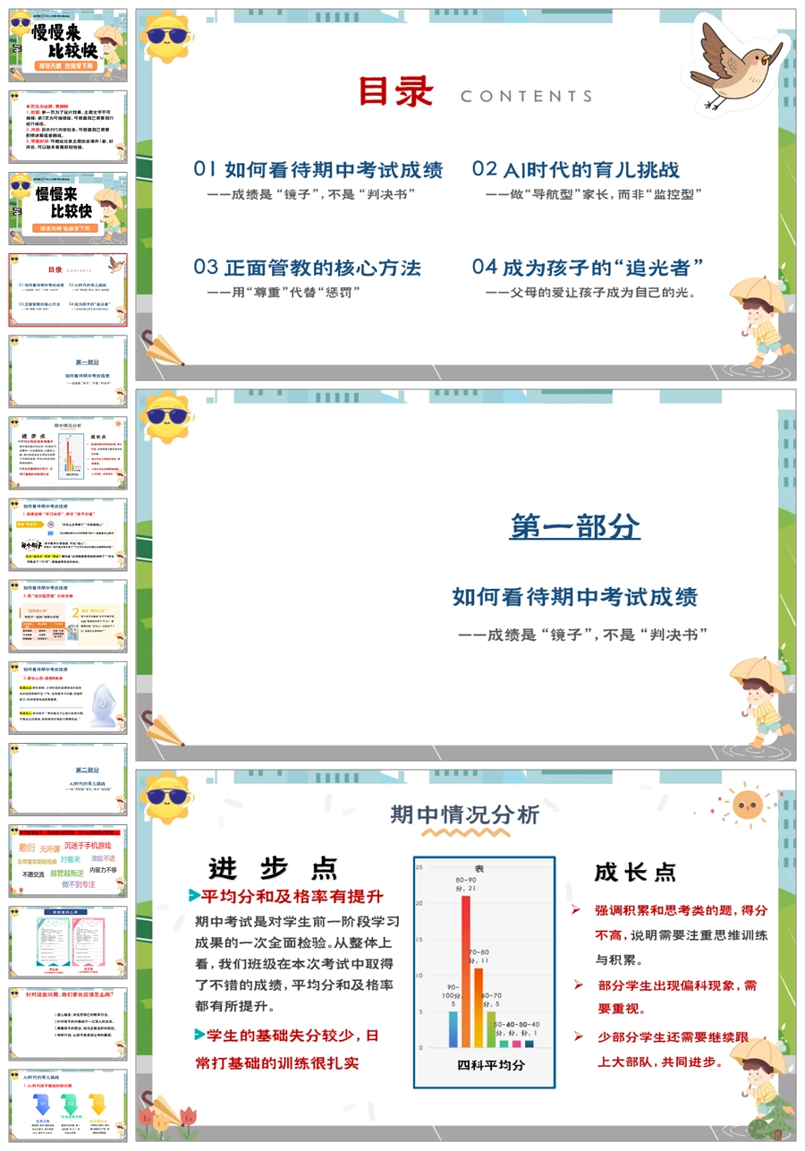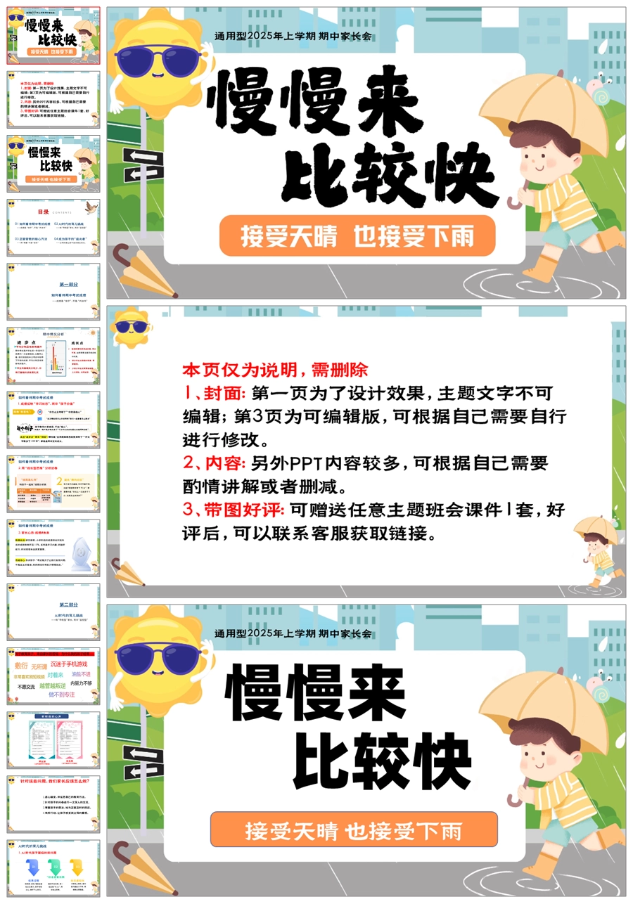 【5948】中学通用家长会期中家长会《慢慢来比较快》PPT课件+发言稿
