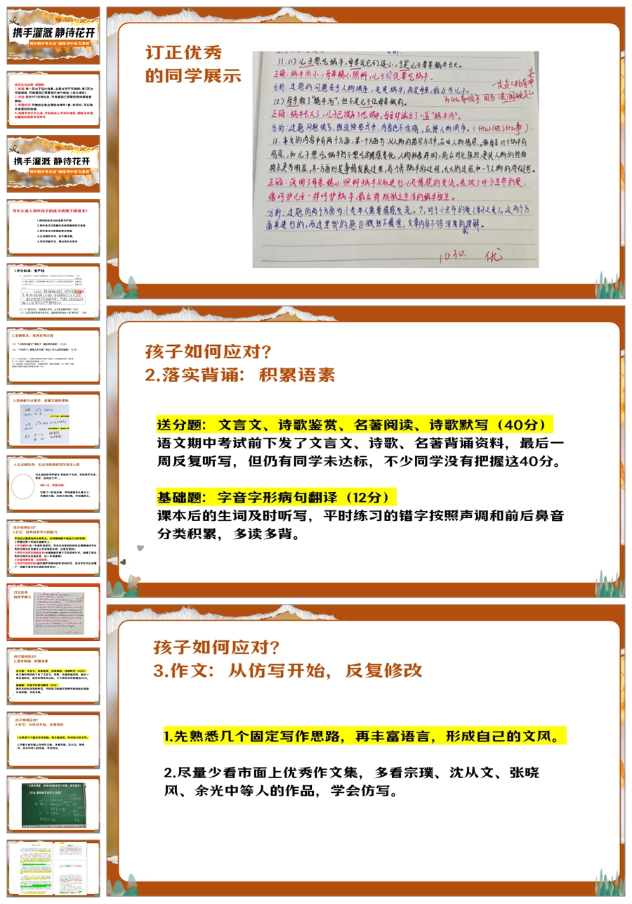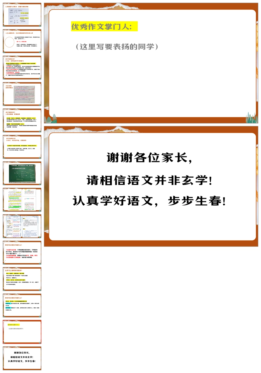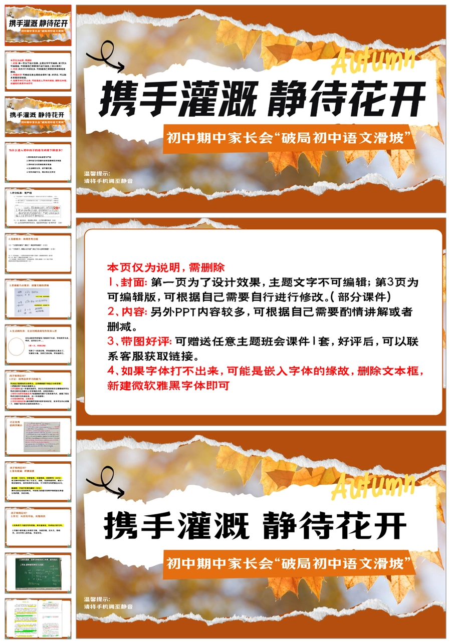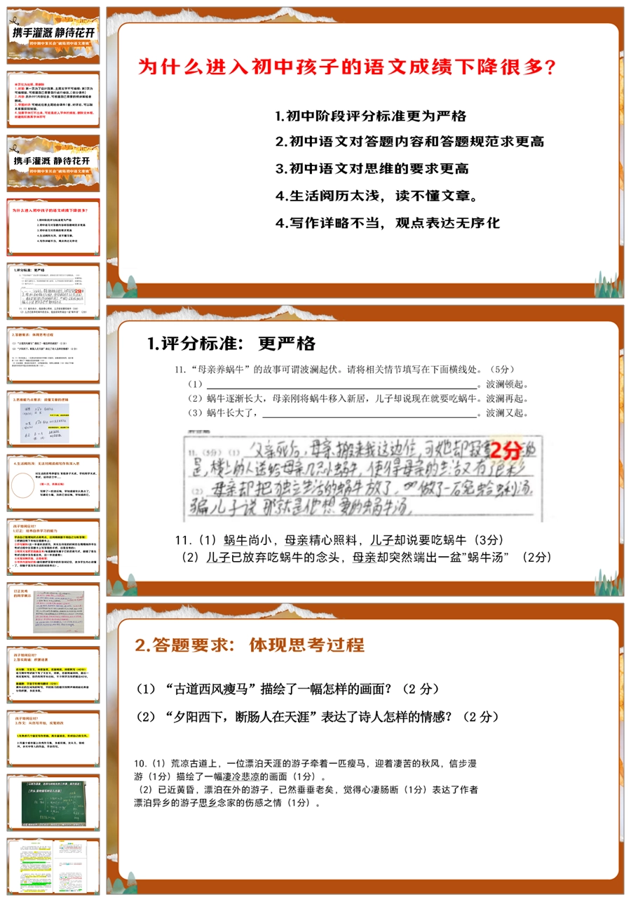 【5950】中学通用家长会期中家长会《破局初中语文滑坡》PPT课件+发言稿