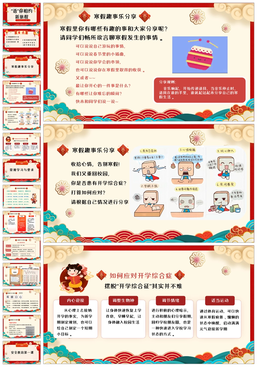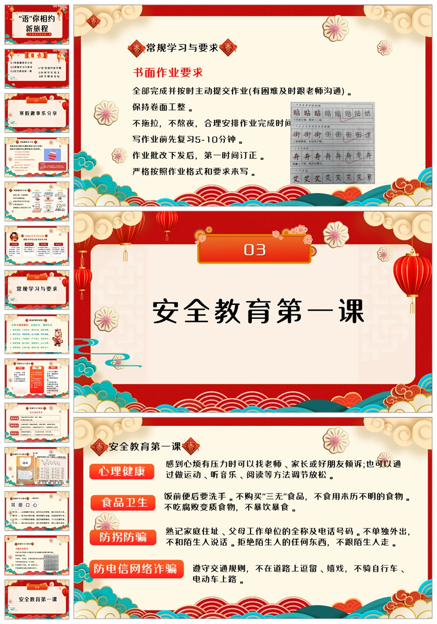 【5889】中学小学寒假安全教育主题班会PPT课件+文字稿