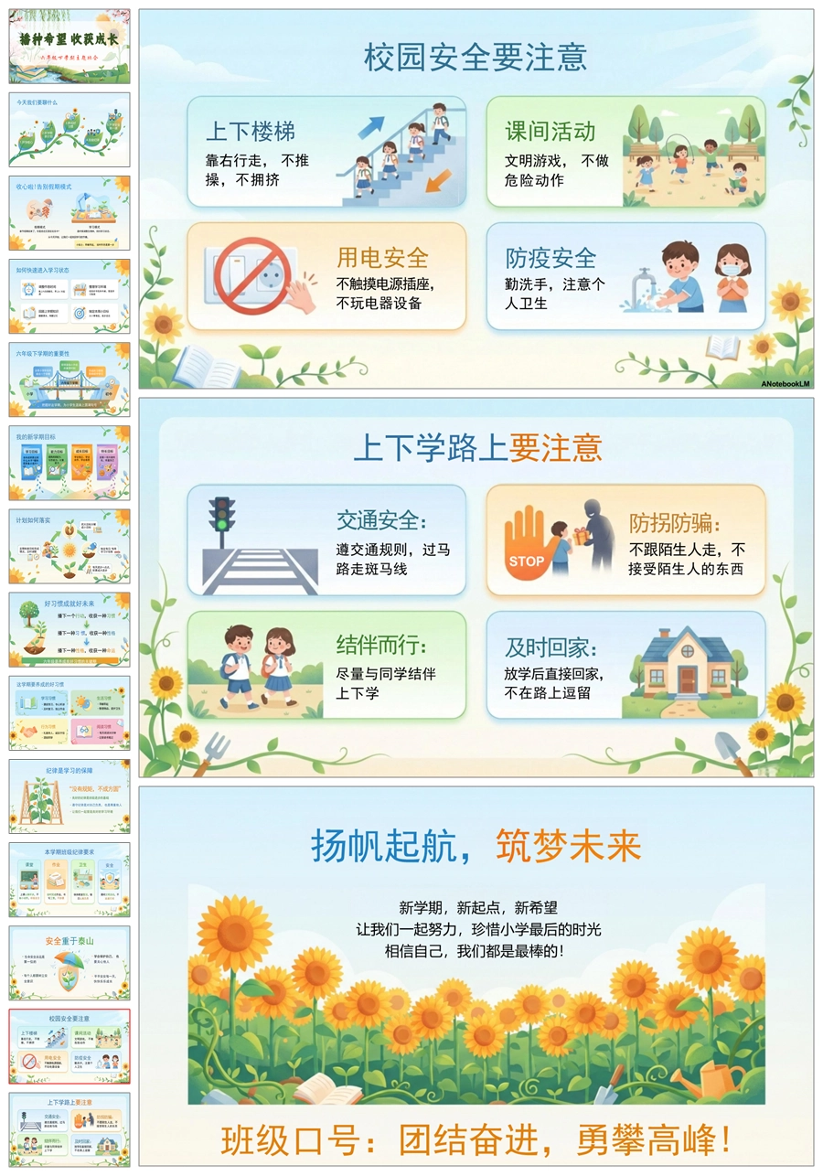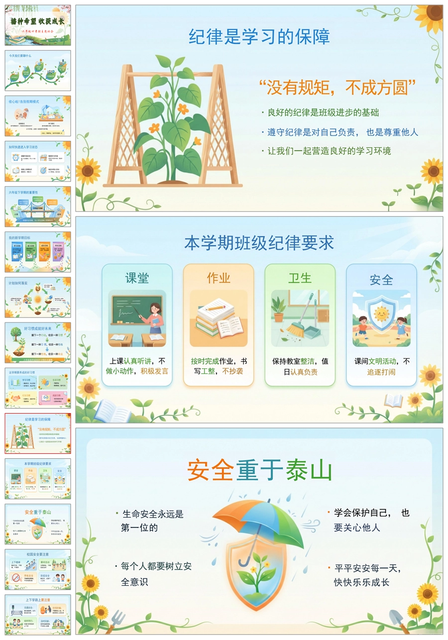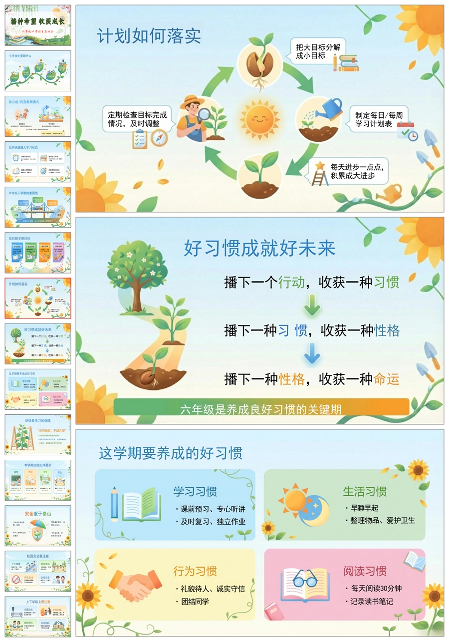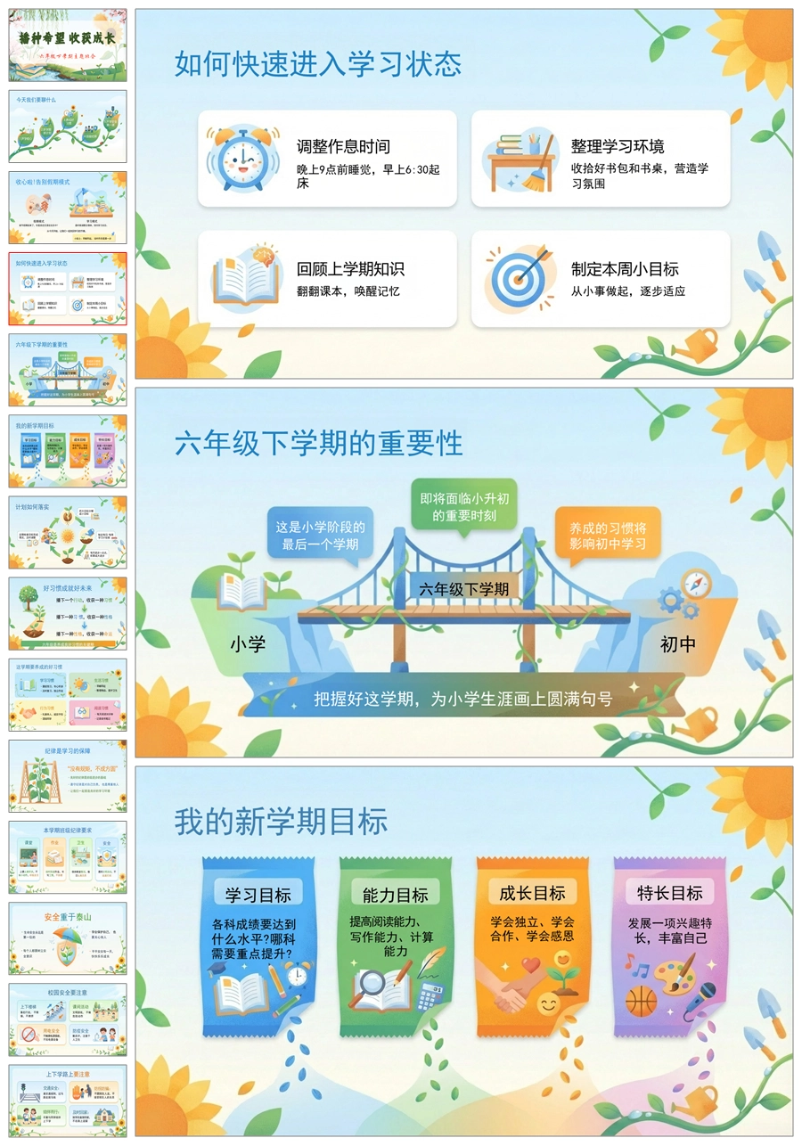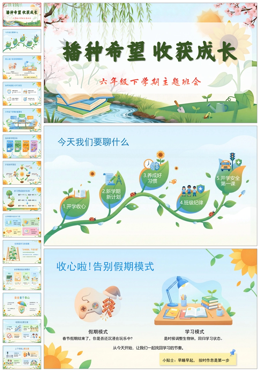 【8648】六年级下开学第一课《播种希望收获成长》ppt课件+发言稿