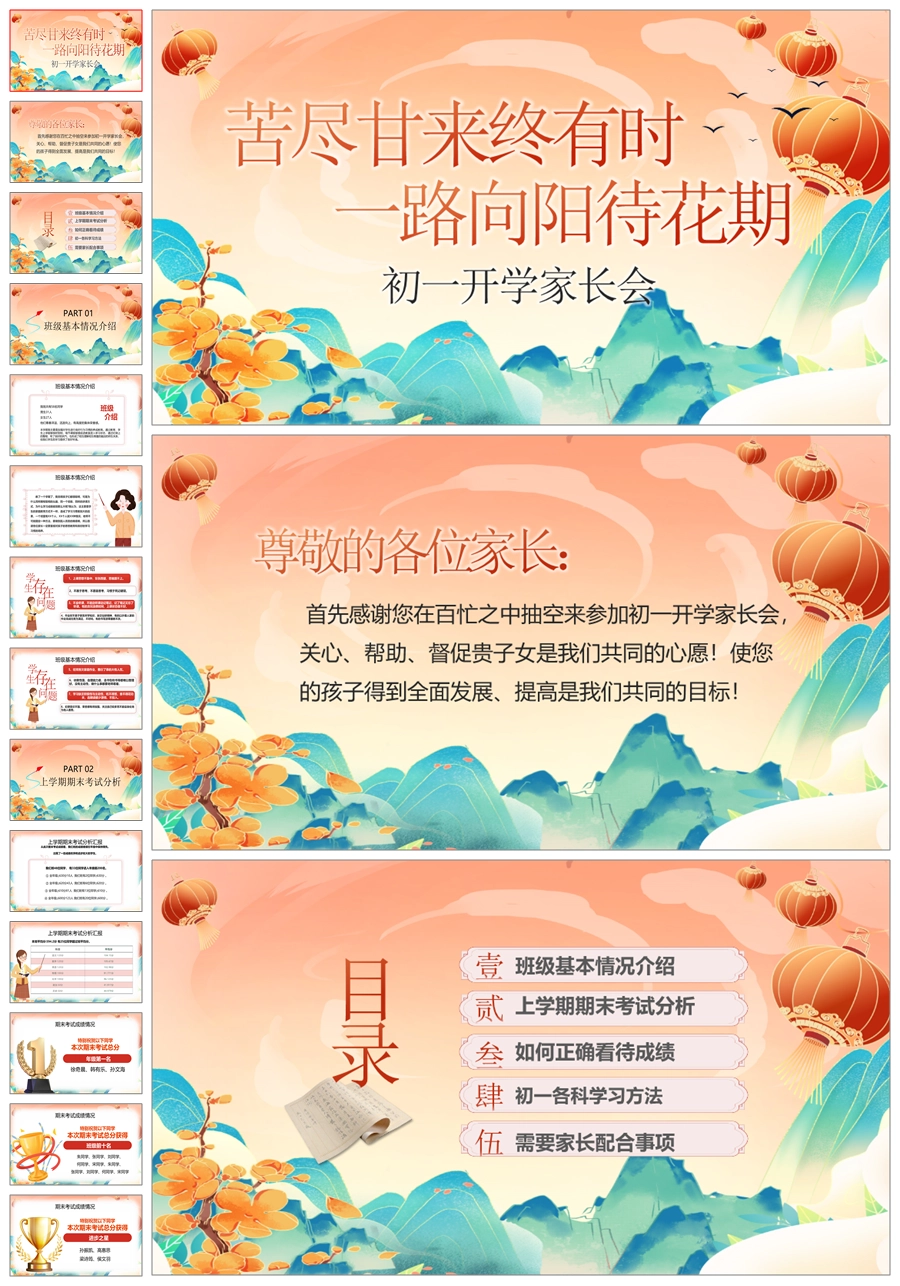 【5924】【初一第二学期】【春季下学期】开学家长会 :苦尽甘来终有时,一路向阳待花期ppt课件+发言稿
