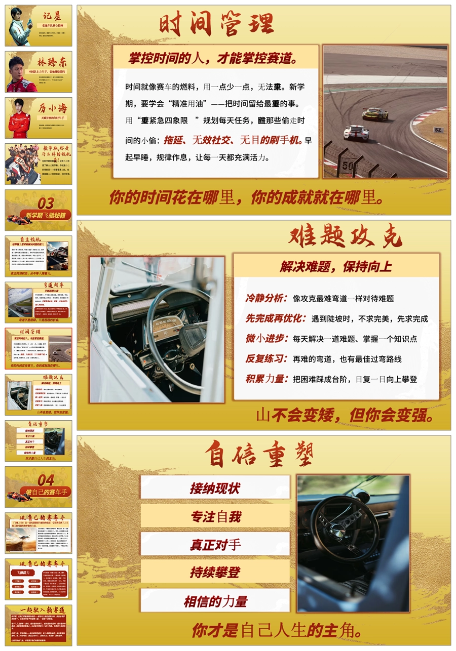 【6122】《以热爱赴山海 以执着筑梦想——从张雪机车夺冠看青春追梦路》励志主题班会PPT课件+教案+演讲稿
