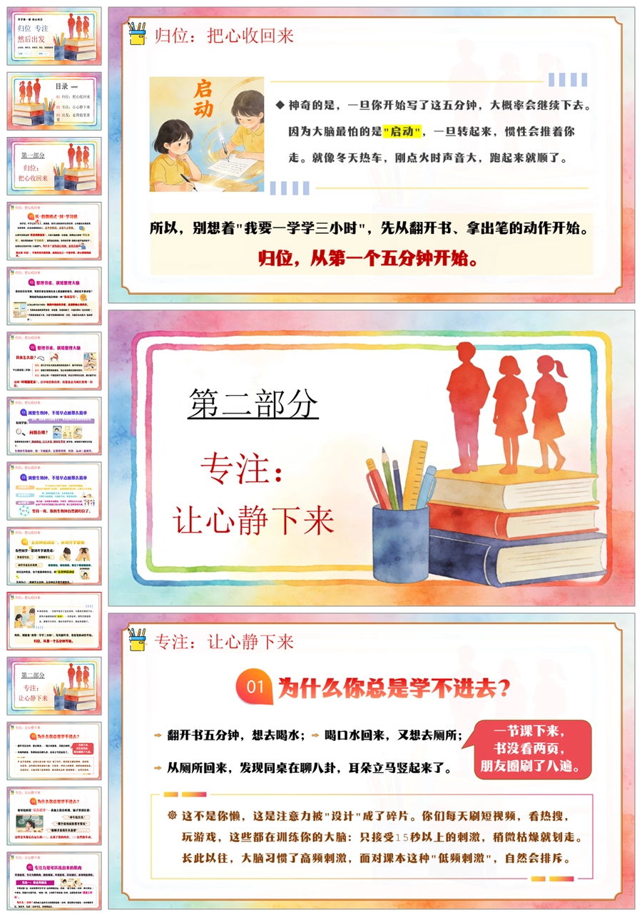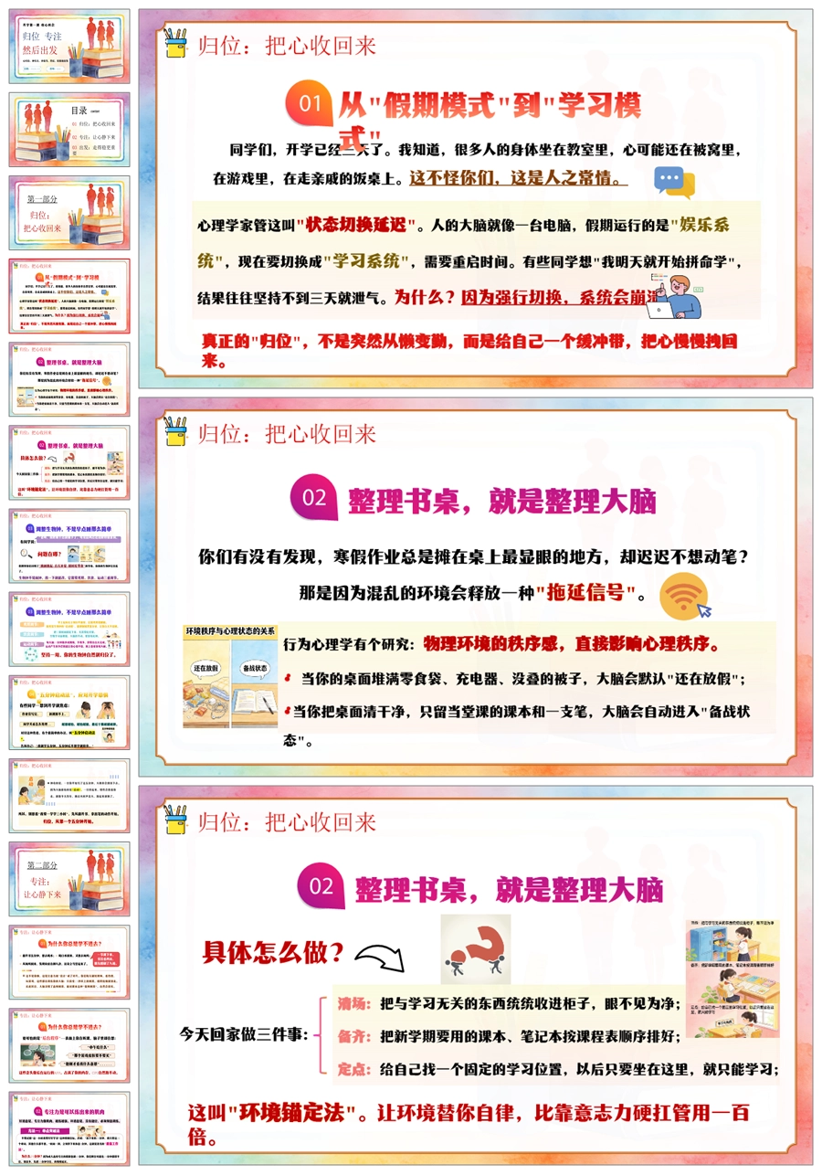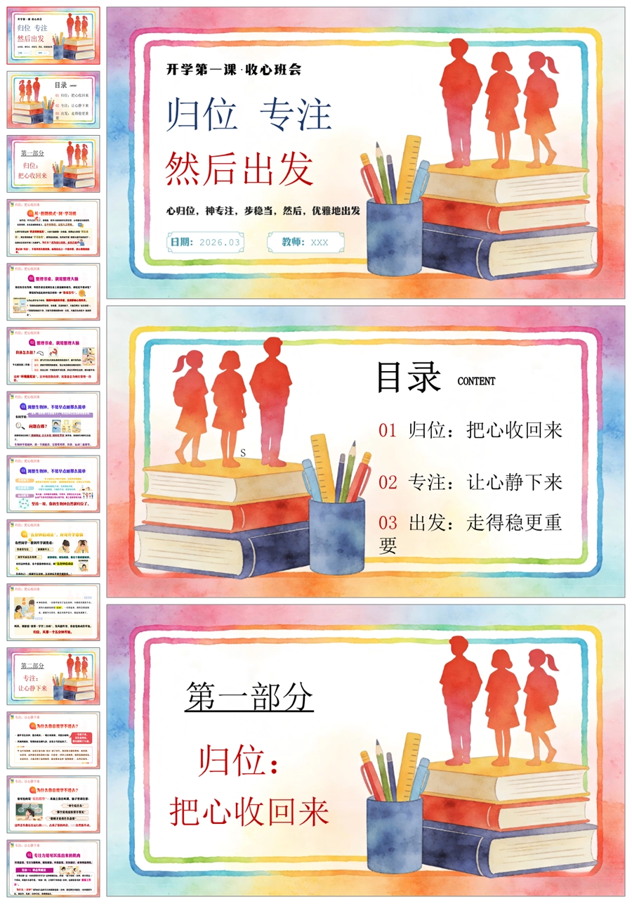 【5932】《归位,专注,然后出发》开学第一课寒假收心主题班会ppt课件+教案