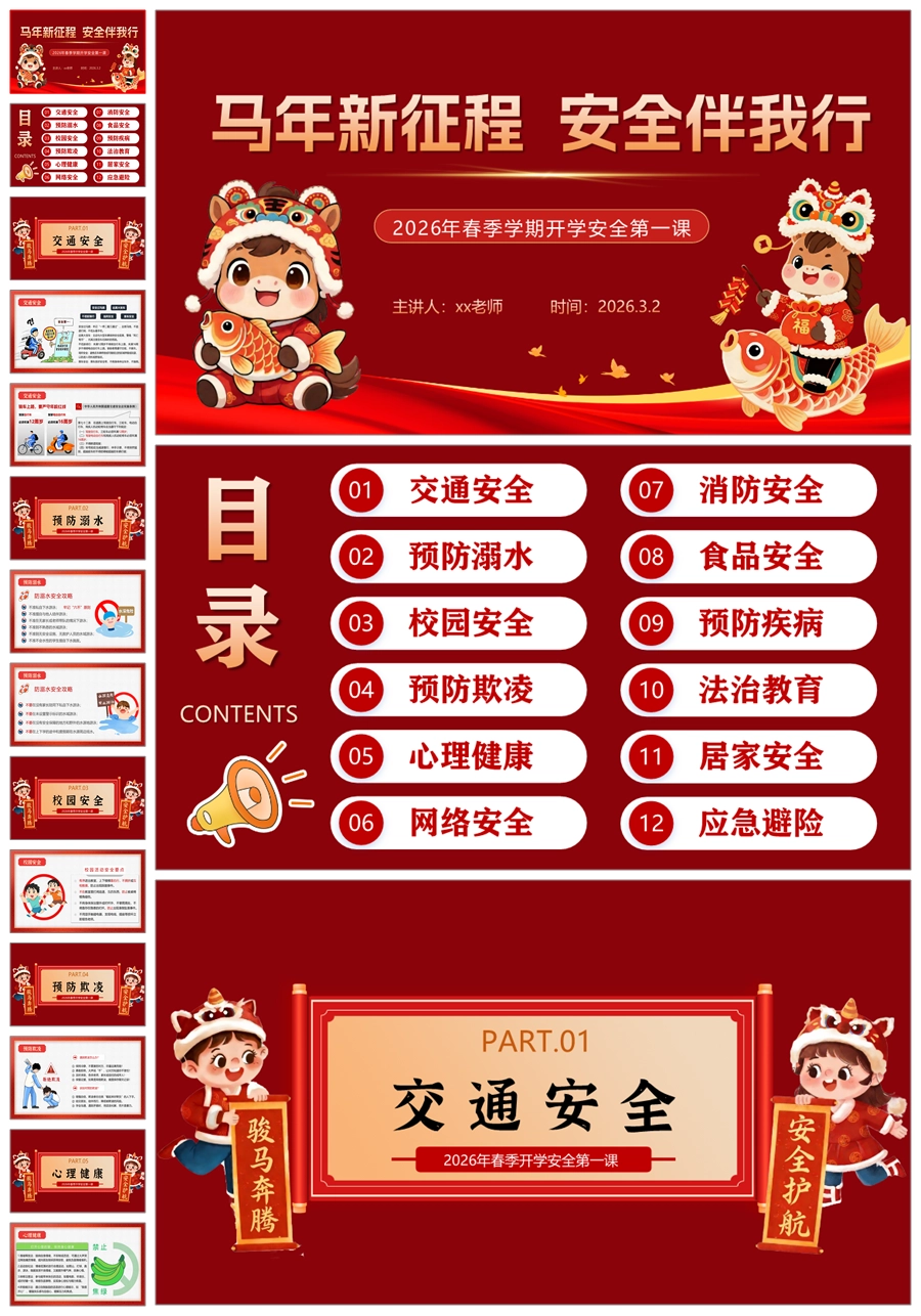 【5934】《马年新征程 安全伴我行》2026年春季开学安全第一课PPT课件+教案+发言稿