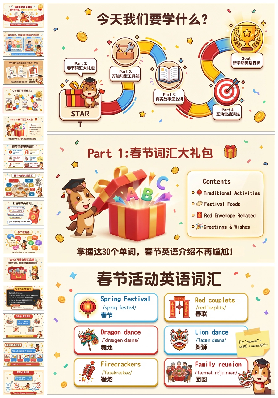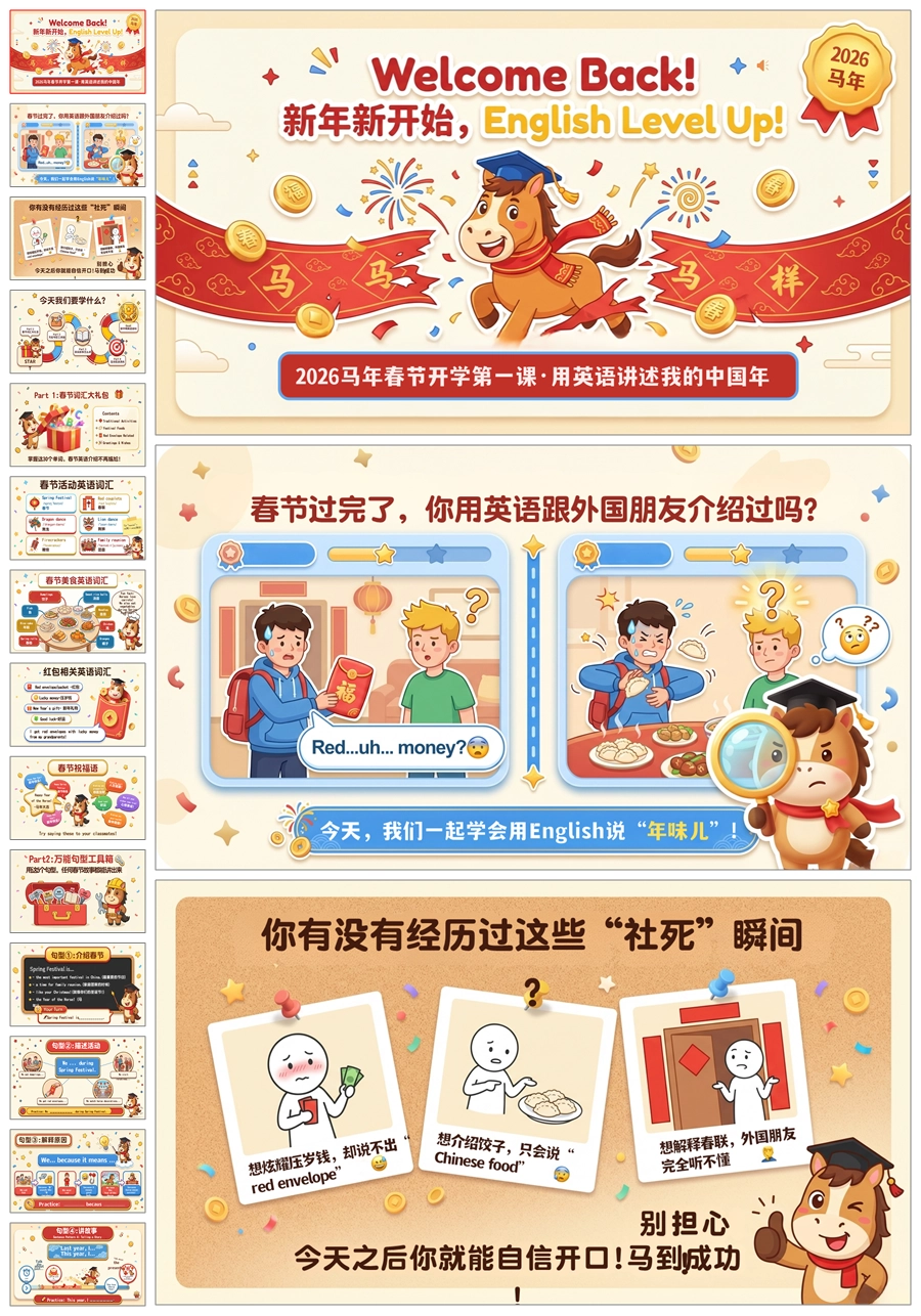 【5940】《用英语讲述我的中国年》【英语】2026春季开学第一课ppt课件+逐字稿