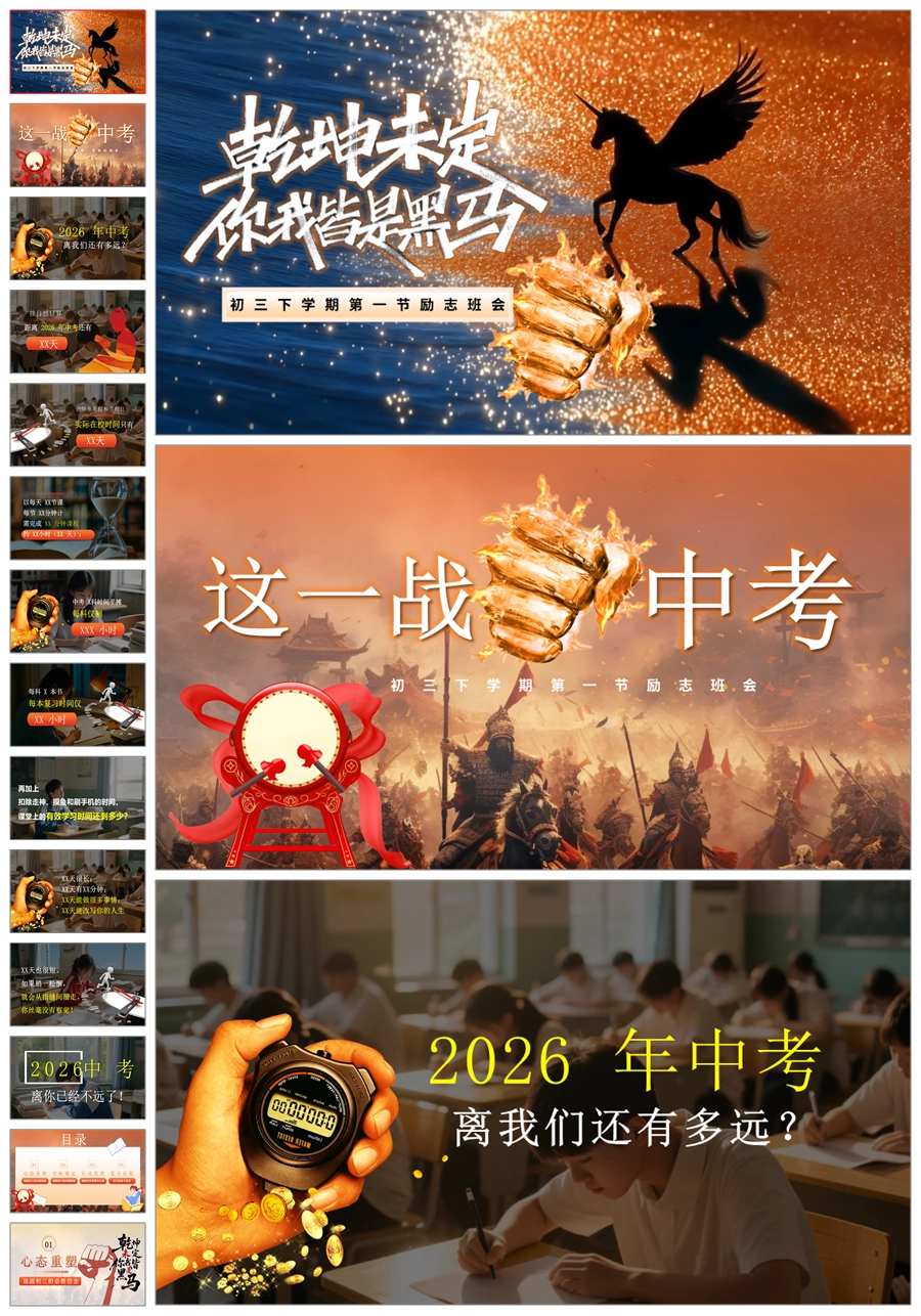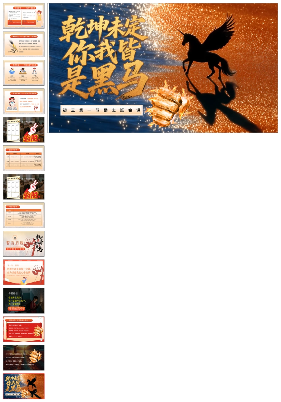 【5942】【初三】【九年级】《乾坤未定,你我皆是黑马》开学第一课励志班会ppt课件+教案+逐字稿