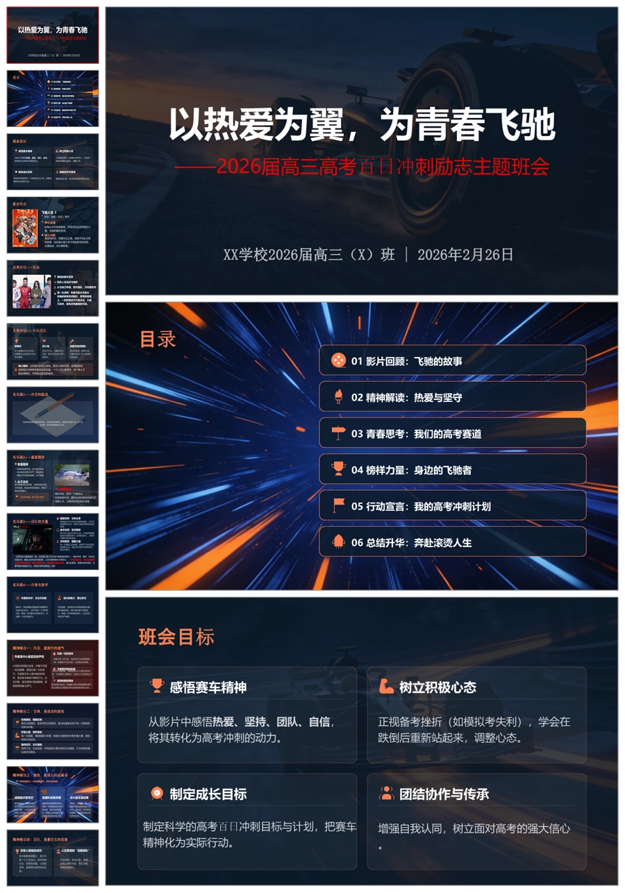 【5955】《以热爱为翼,为青春飞驰》2026届高三百日冲刺励志主题班会ppt课件+视频