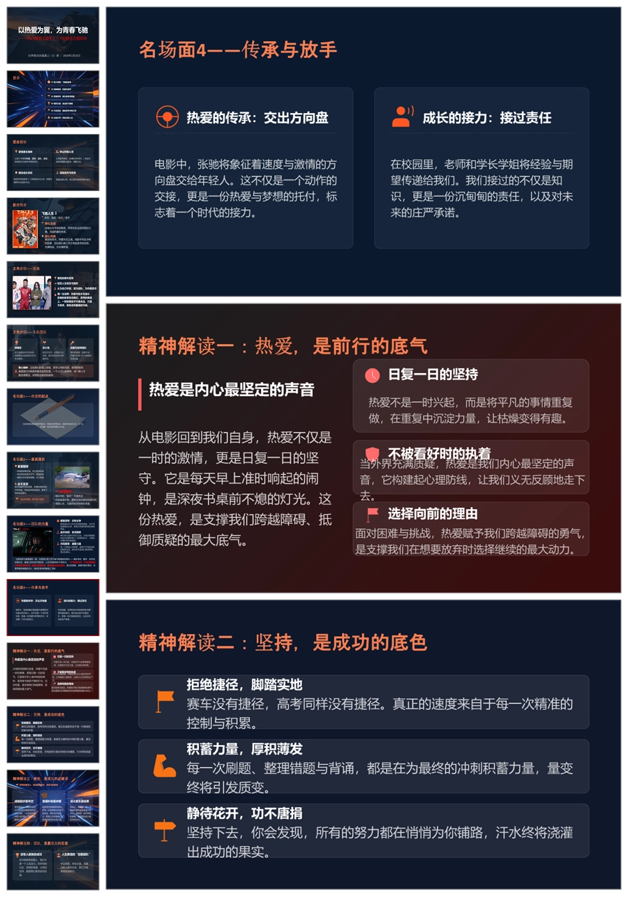 【6122】《以热爱赴山海 以执着筑梦想——从张雪机车夺冠看青春追梦路》励志主题班会PPT课件+教案+演讲稿