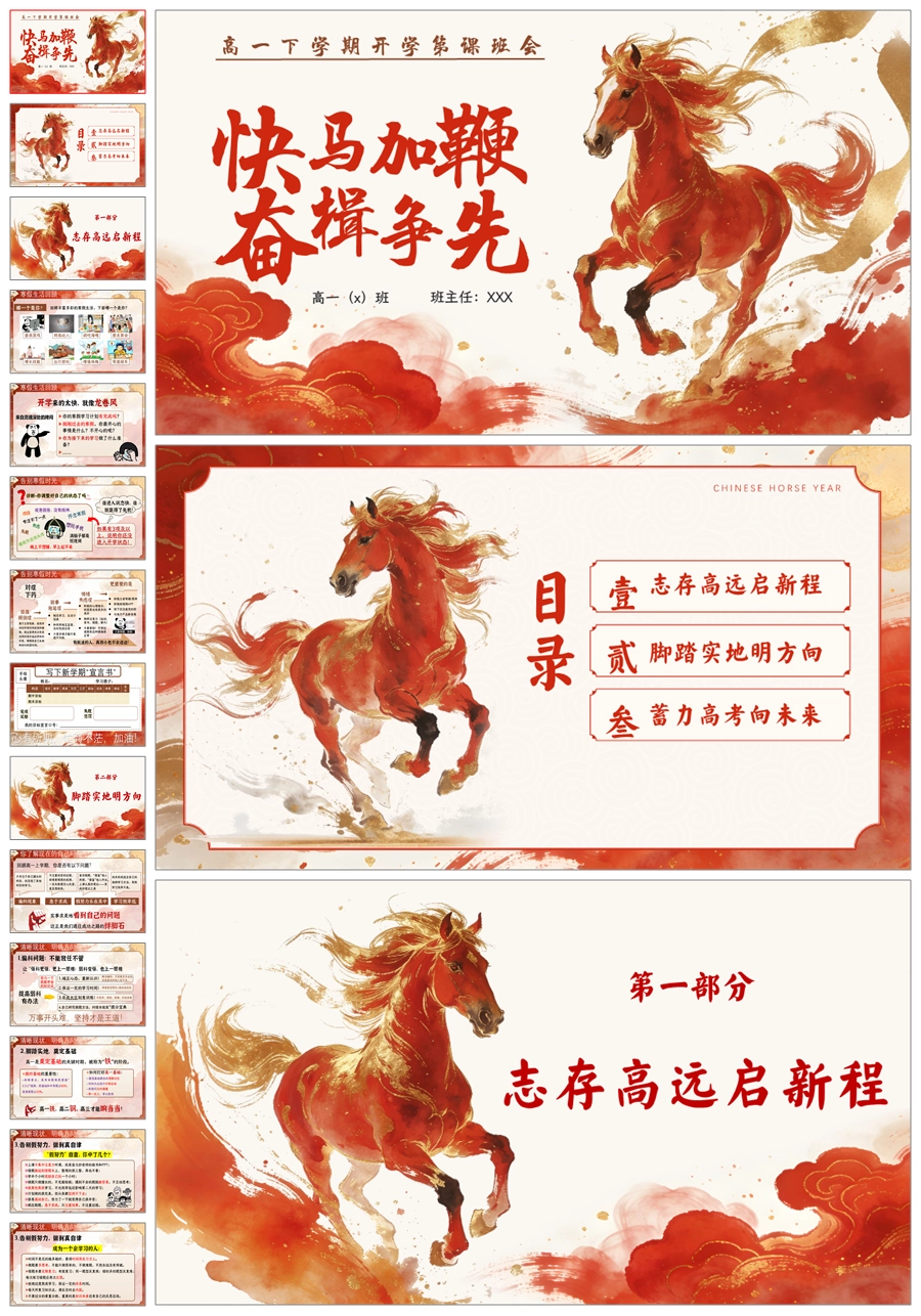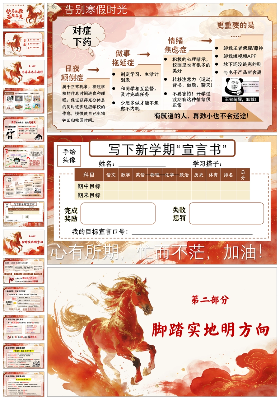 【5962】【高一下学期】《快马加鞭 奋楫争先》开学第一课ppt课件+教案+逐字稿+宣言