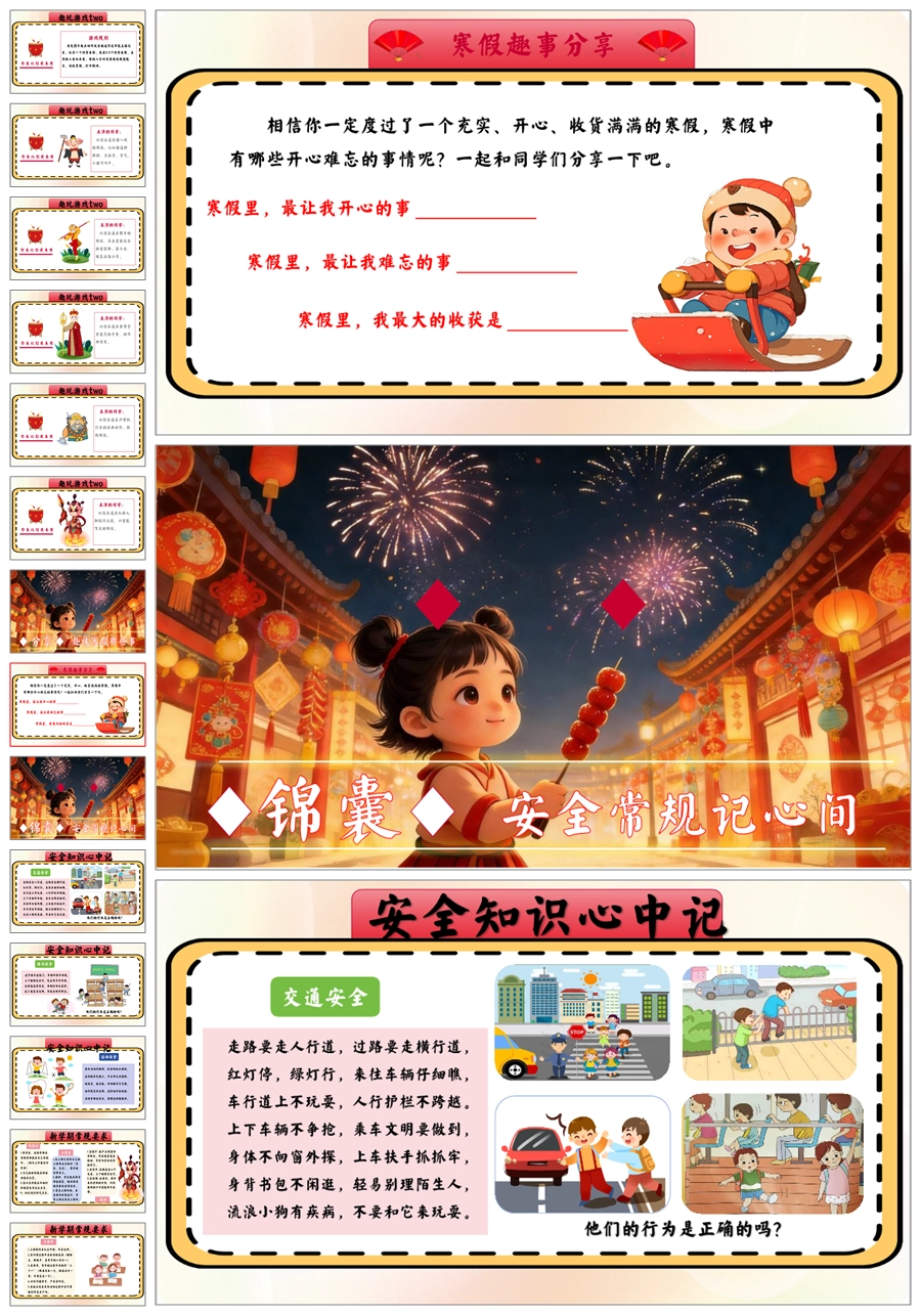 【5889】中学小学寒假安全教育主题班会PPT课件+文字稿