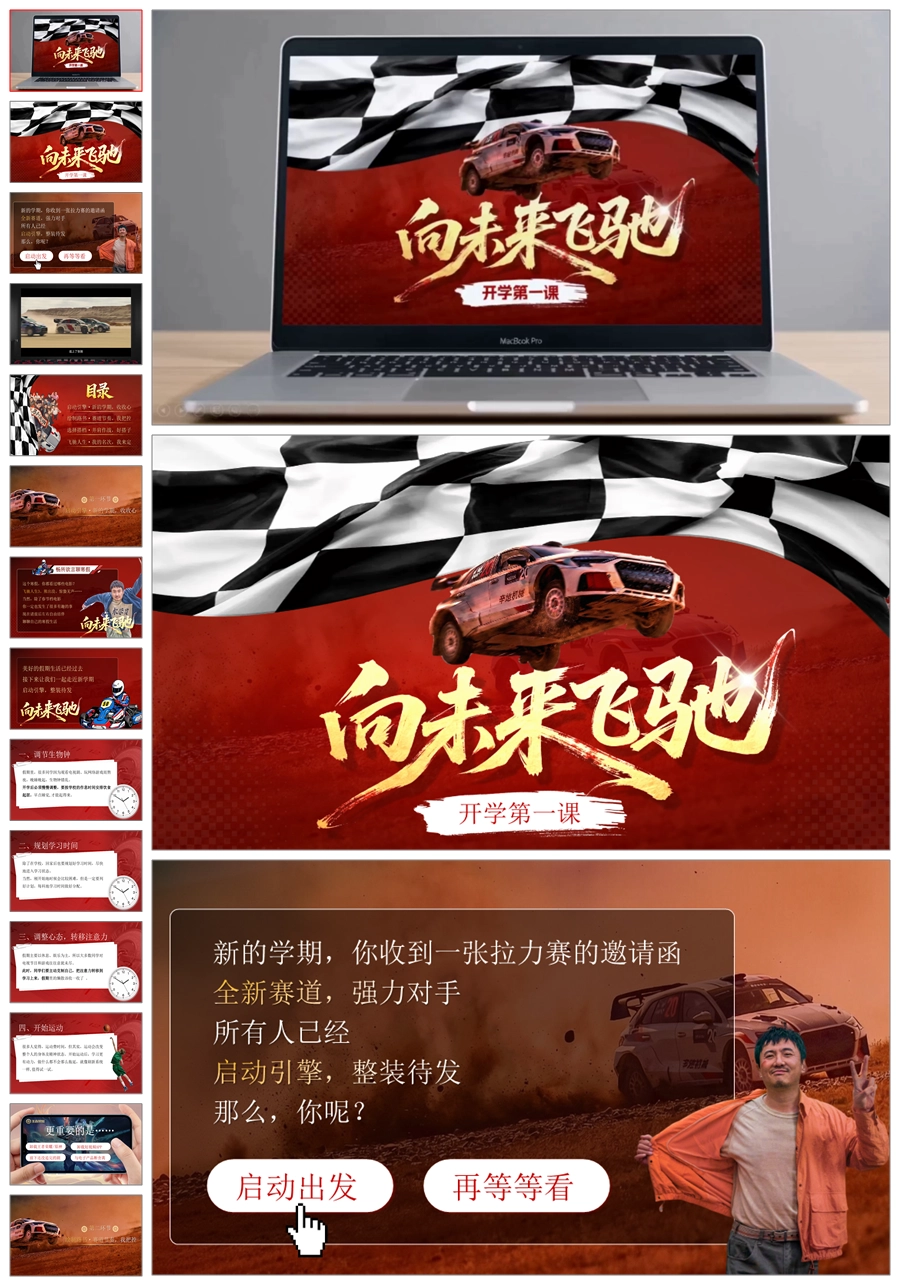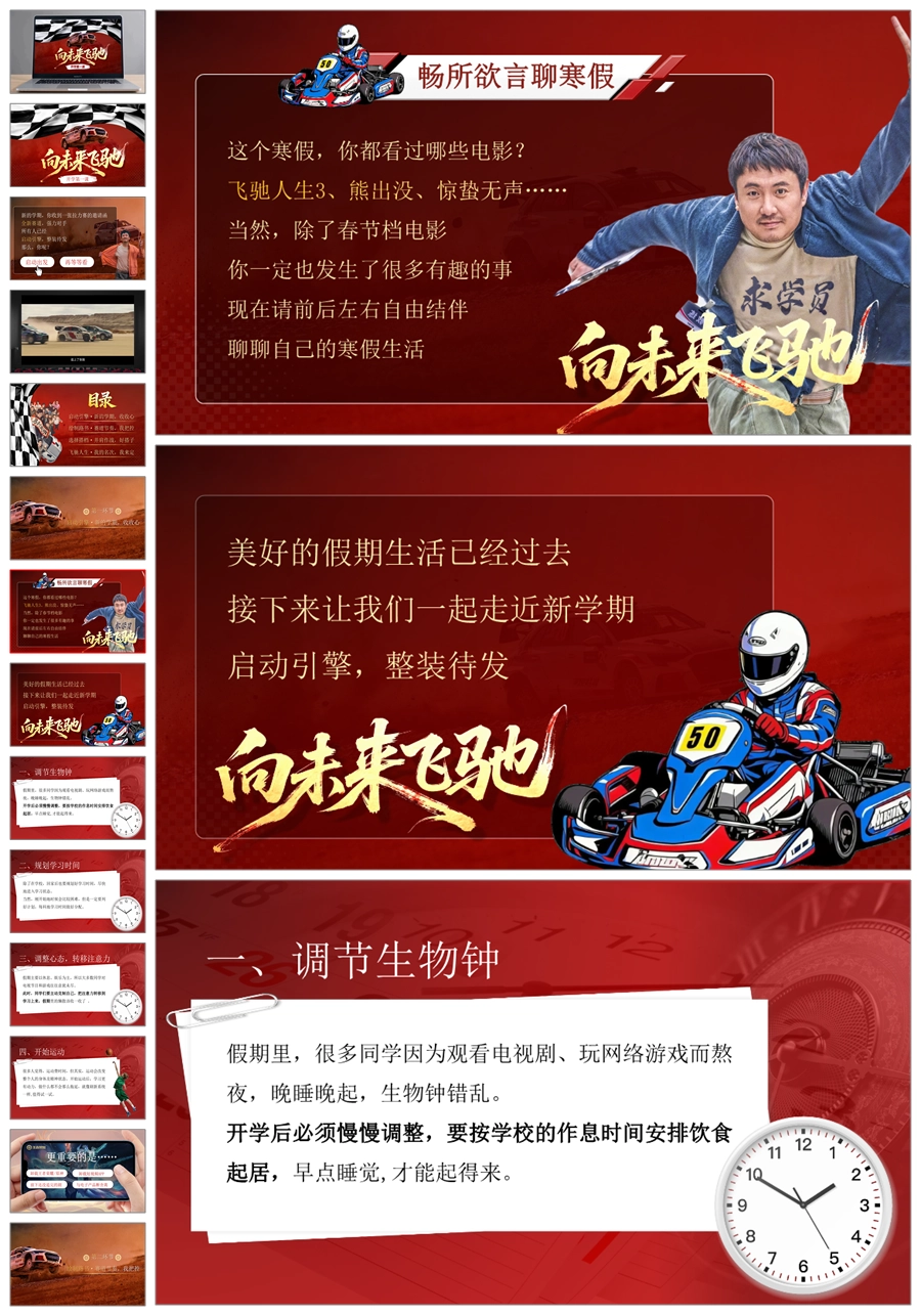 【5977】2026开学第一课主题班会《向未来飞驰》ppt课件+视频+教案+逐字稿+宣言