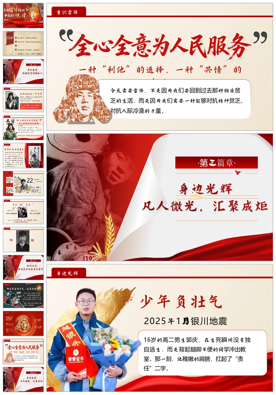 【5986】《弘扬雷锋精神争做时代先锋》学习雷锋精神主题班会ppt课件+逐字稿+视频