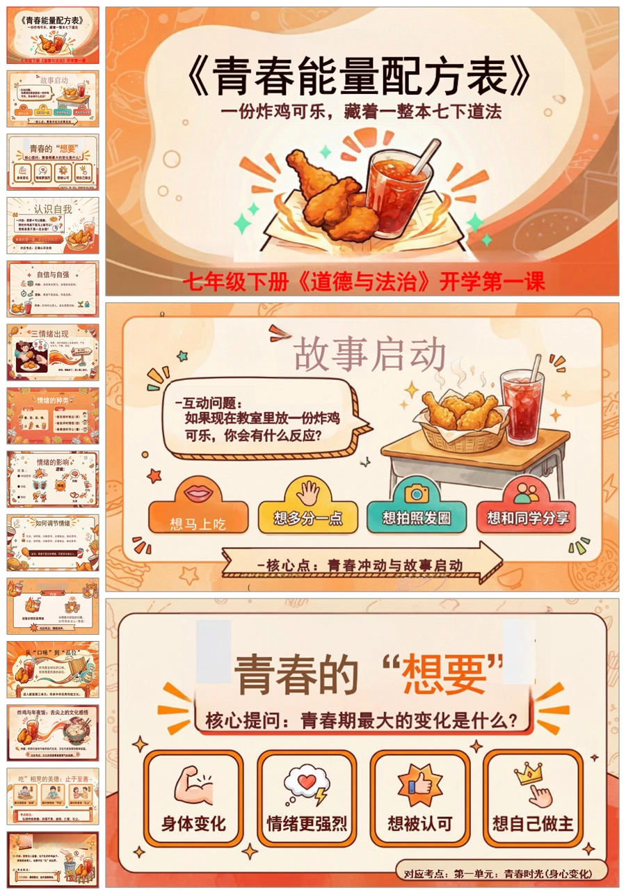【5992】【初一】【春季下】七年级【道法】开学第一课《青春能量配方表》ppt课件+发言稿
