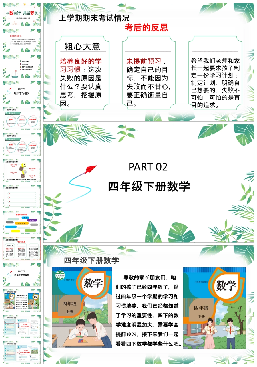 【5997】【四年级】【数学】【春季下】下学期开学家长会《与数同行,共话梦想》ppt课件+发言稿