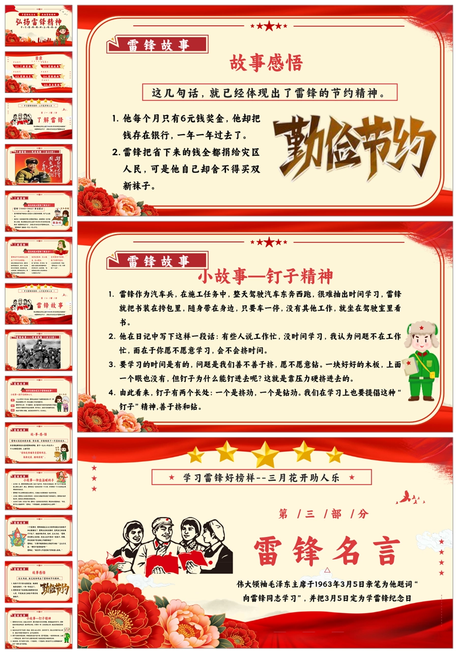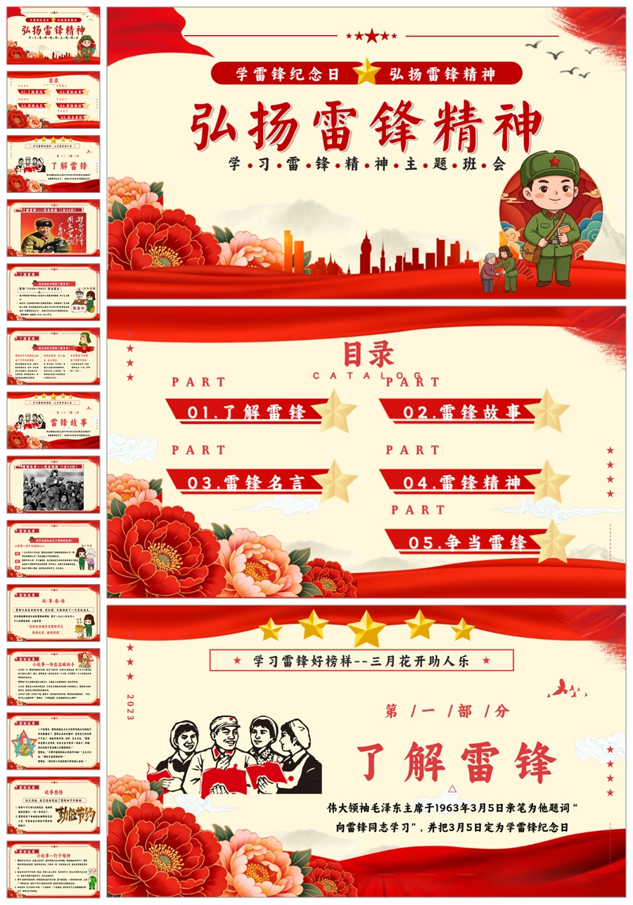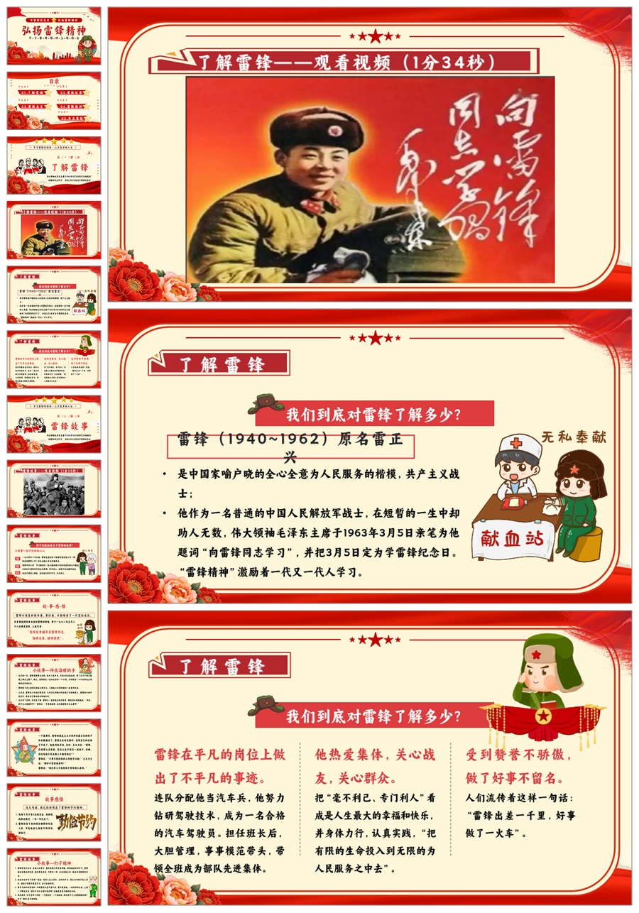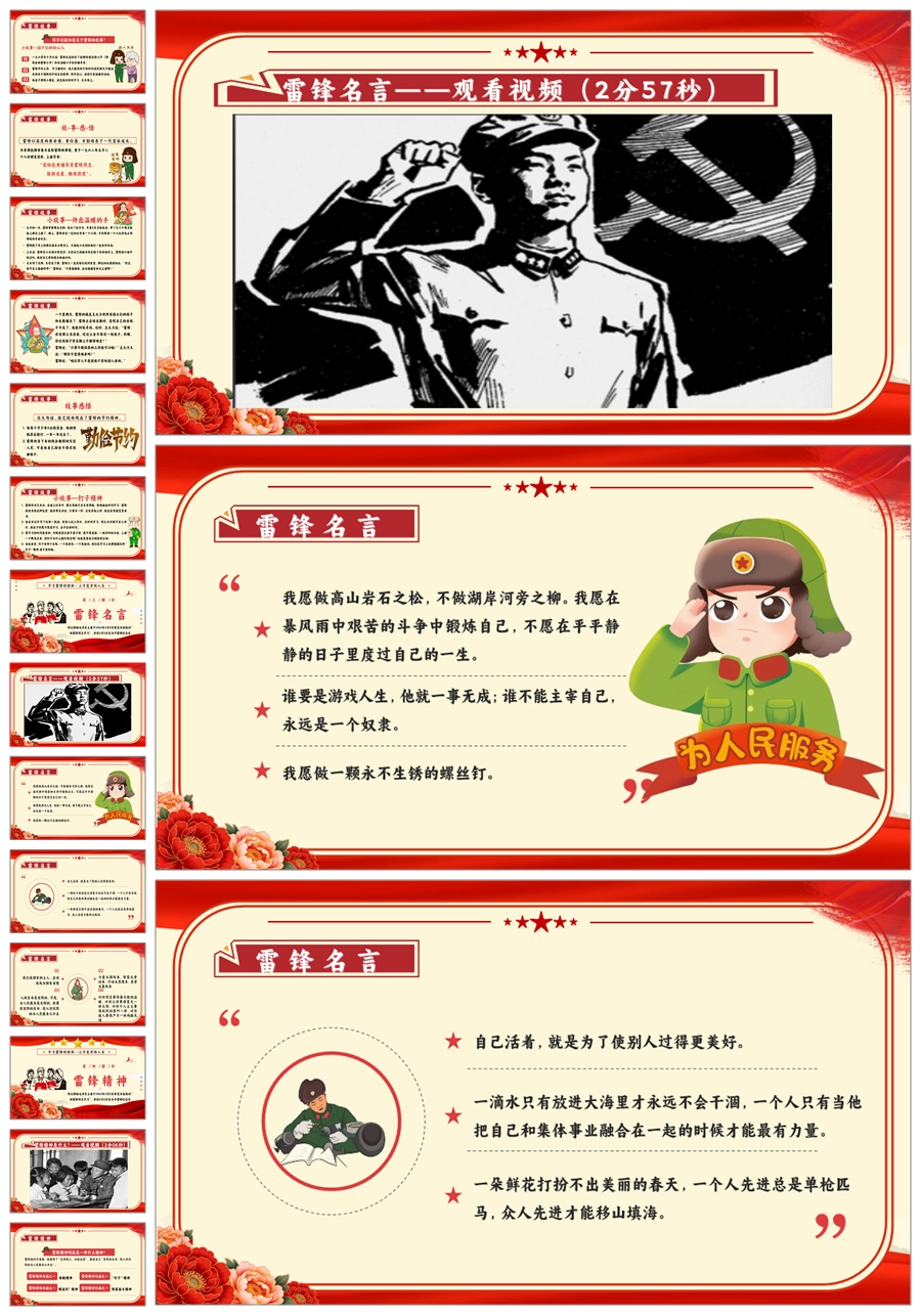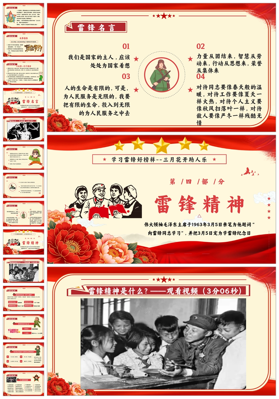 【8664】《学雷锋纪念日》弘扬雷锋精品主题班会PPT+教案+演讲稿+主持稿+6个视频