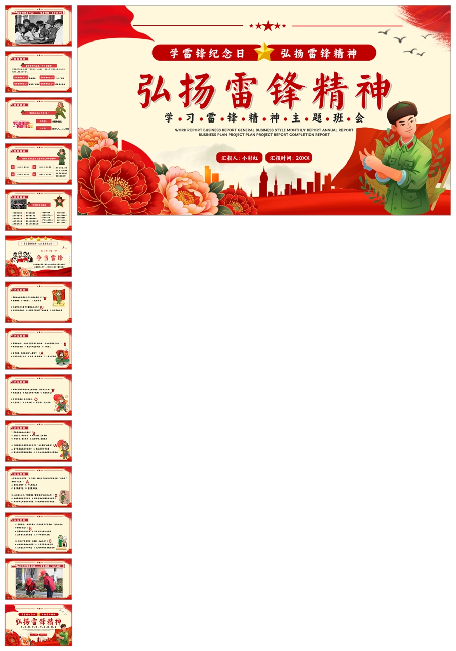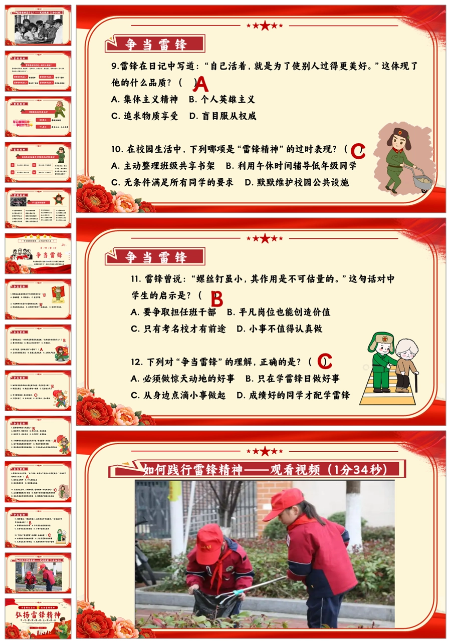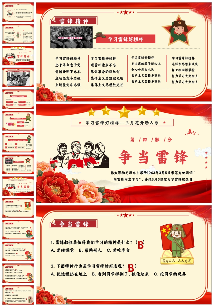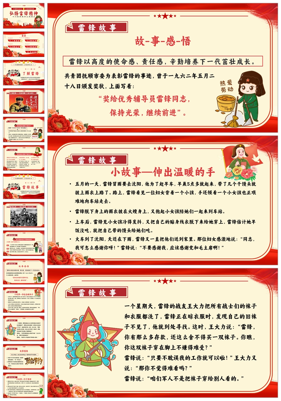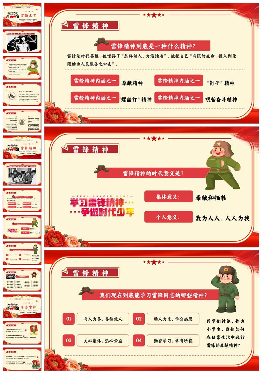 【8664】《学雷锋纪念日》弘扬雷锋精品主题班会PPT+教案+演讲稿+主持稿+6个视频