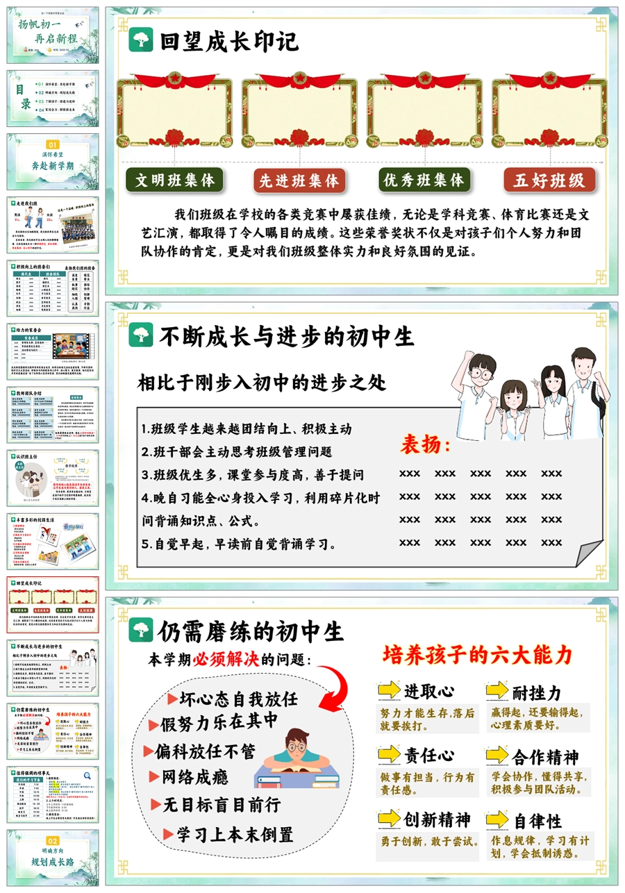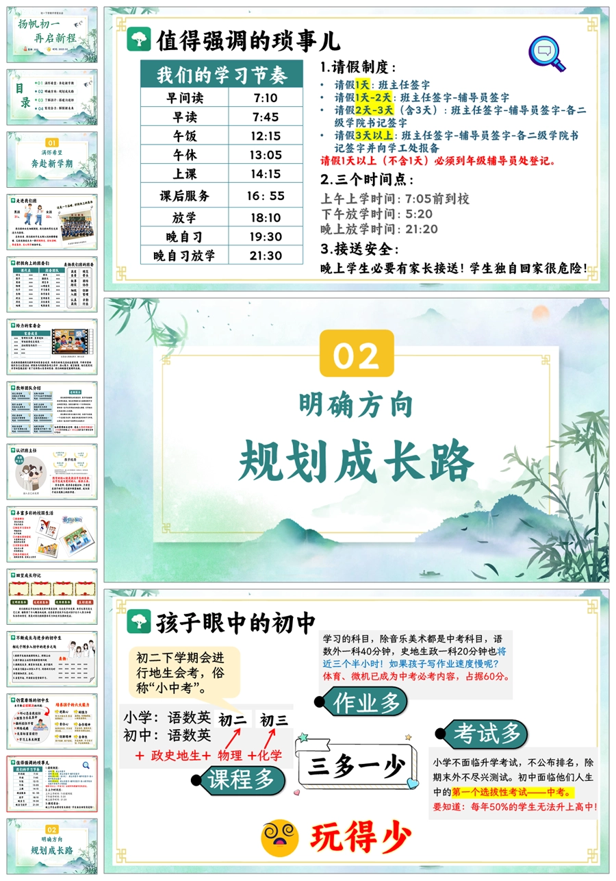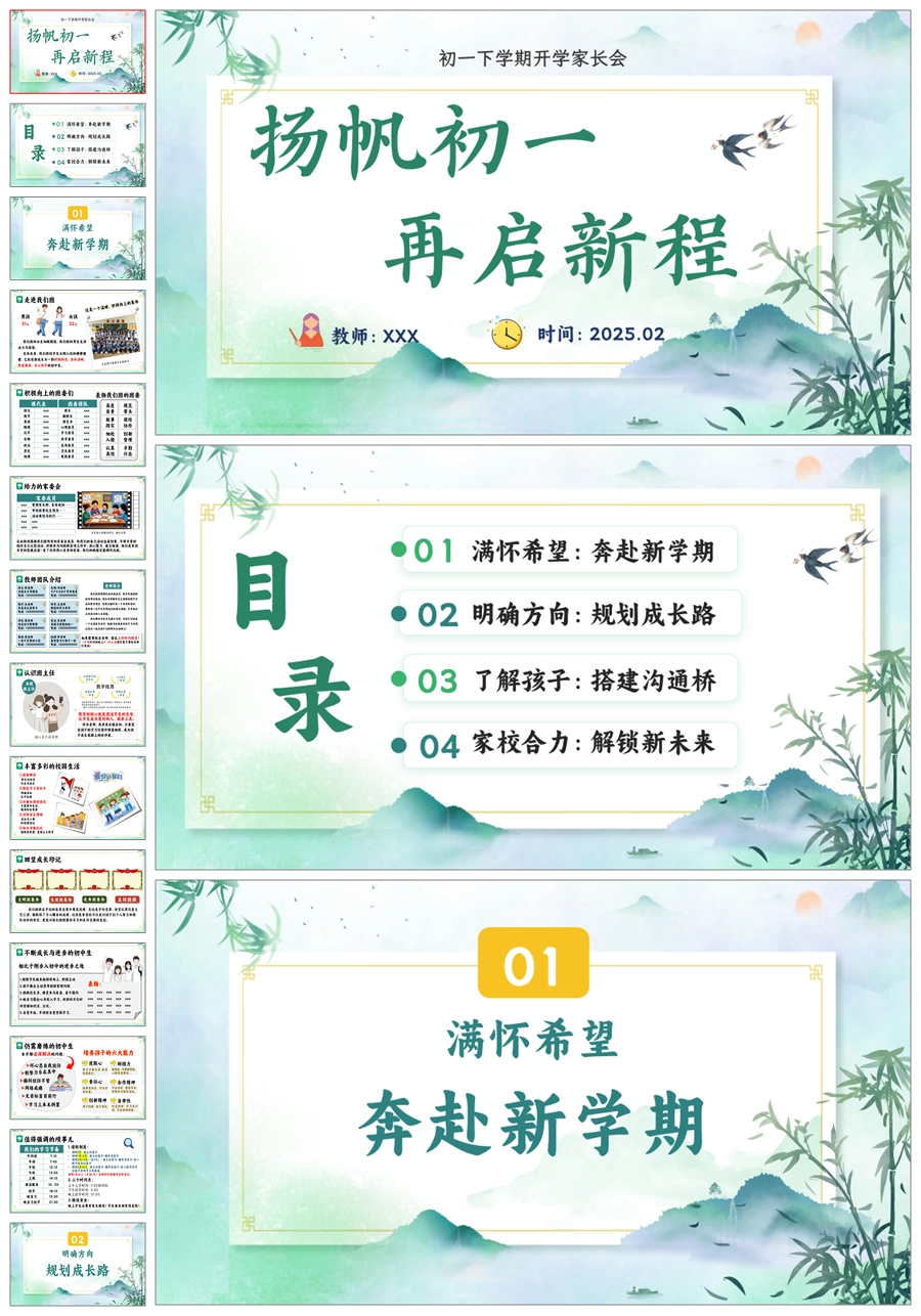 【8666】初一七年级下学期开学家长会《扬帆初一再启新程》PPT课件+发言稿