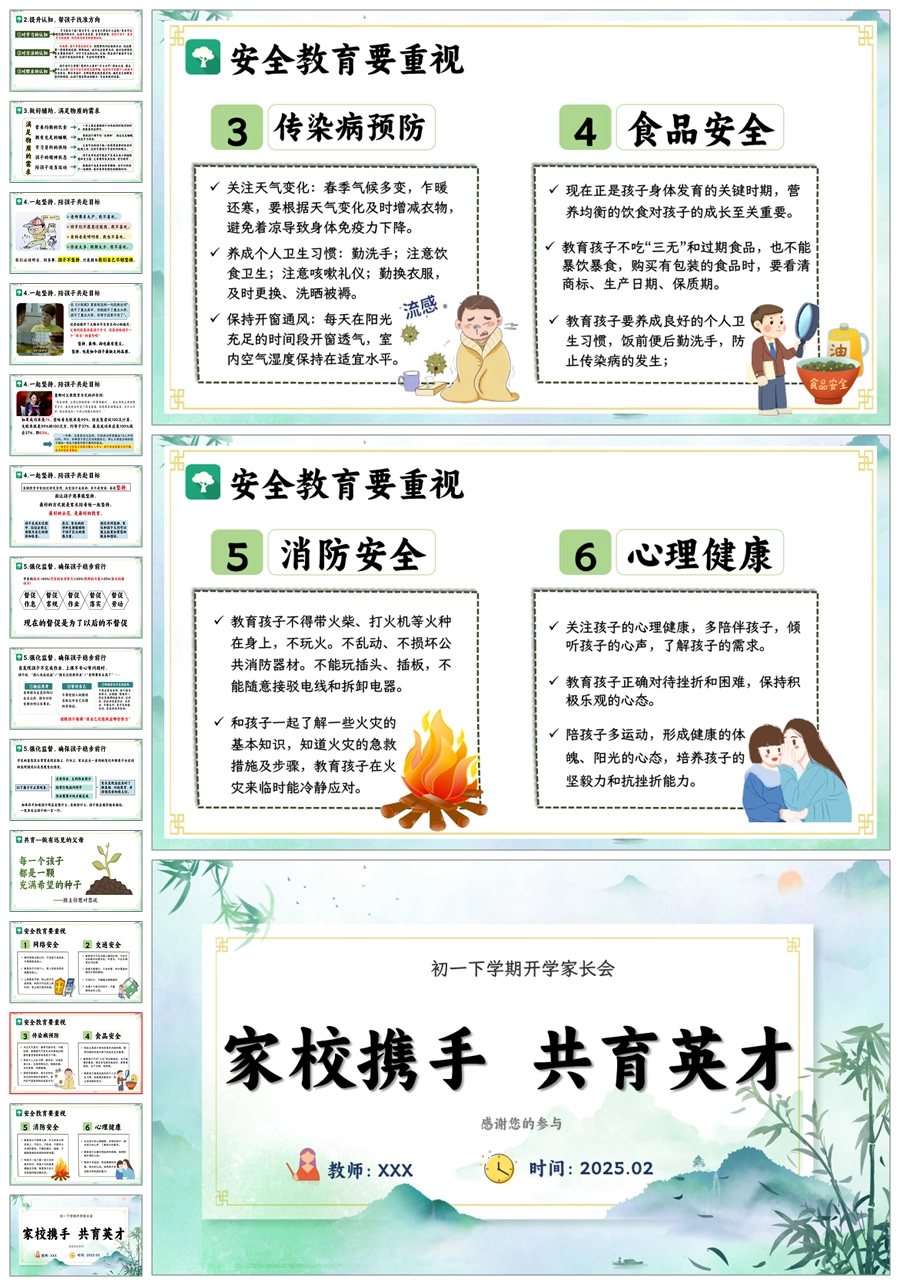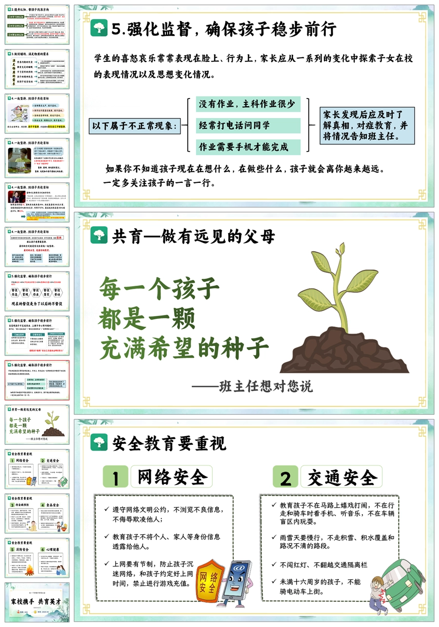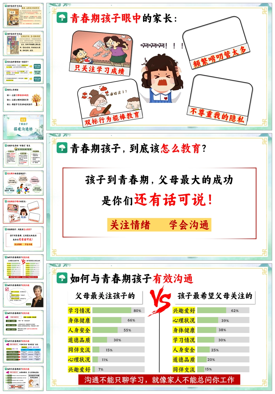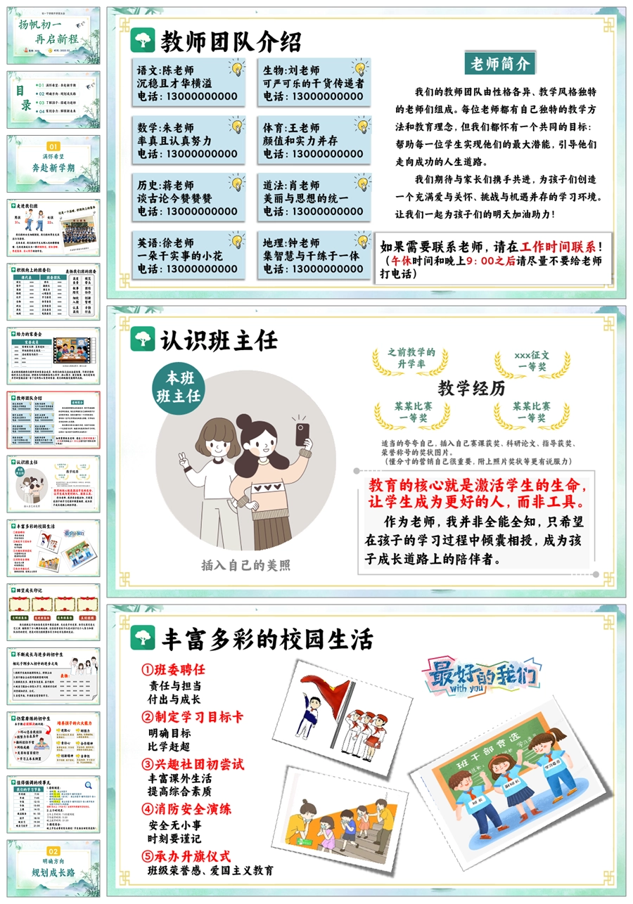 【8666】初一七年级下学期开学家长会《扬帆初一再启新程》PPT课件+发言稿