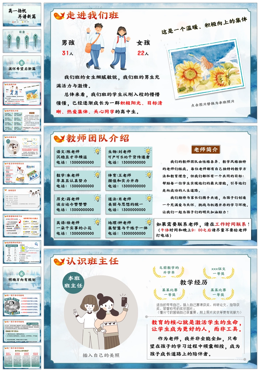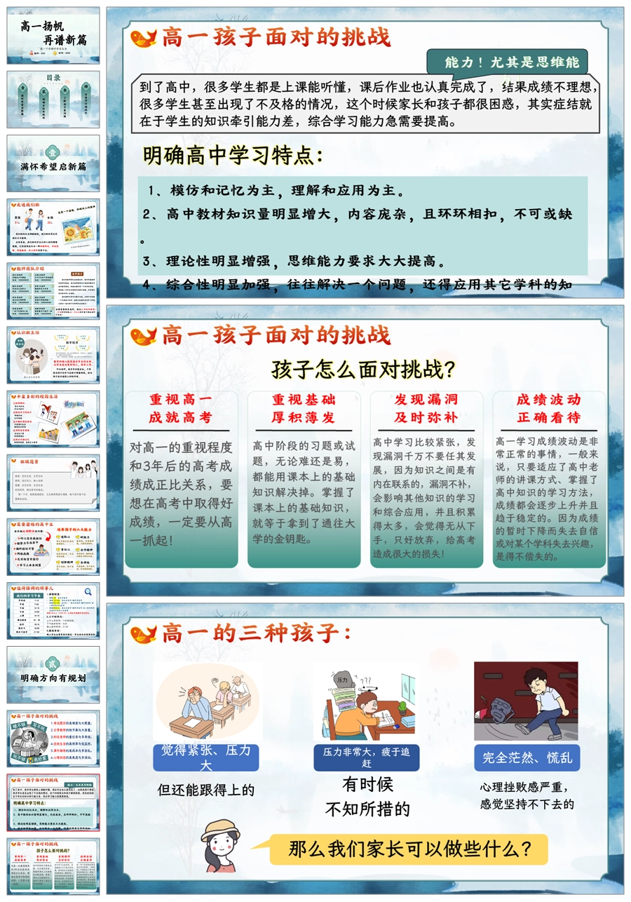 【8668】高一下学期开学家长会《高一扬帆再谱新篇》ppt课件+发言稿