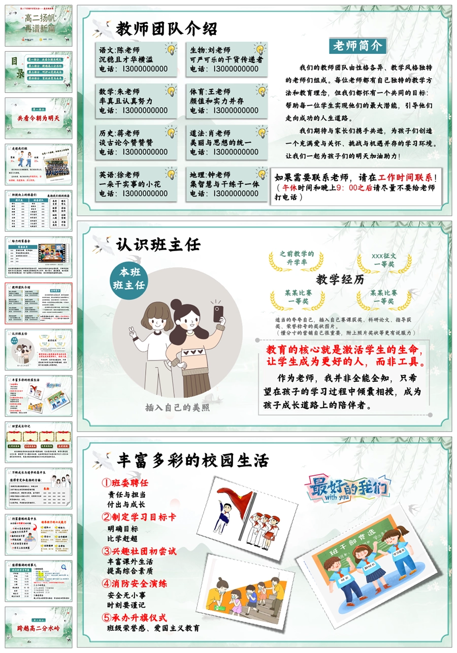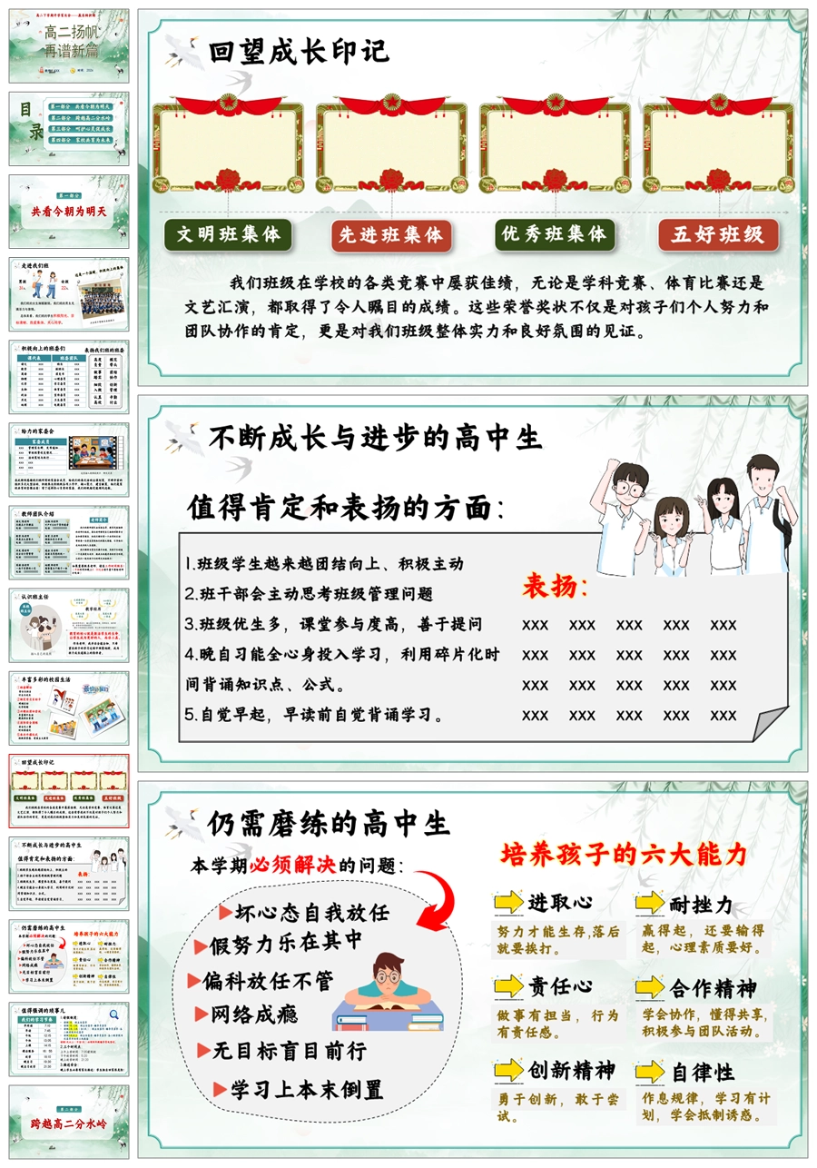 【8669】高二下学期开学家长会《高二扬帆再谱新篇》PPT课件+发言稿