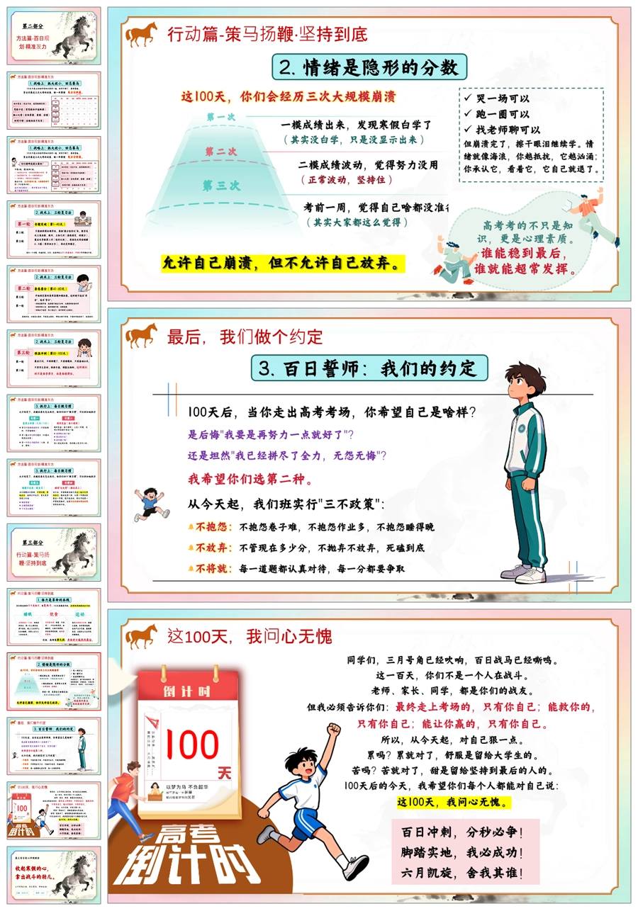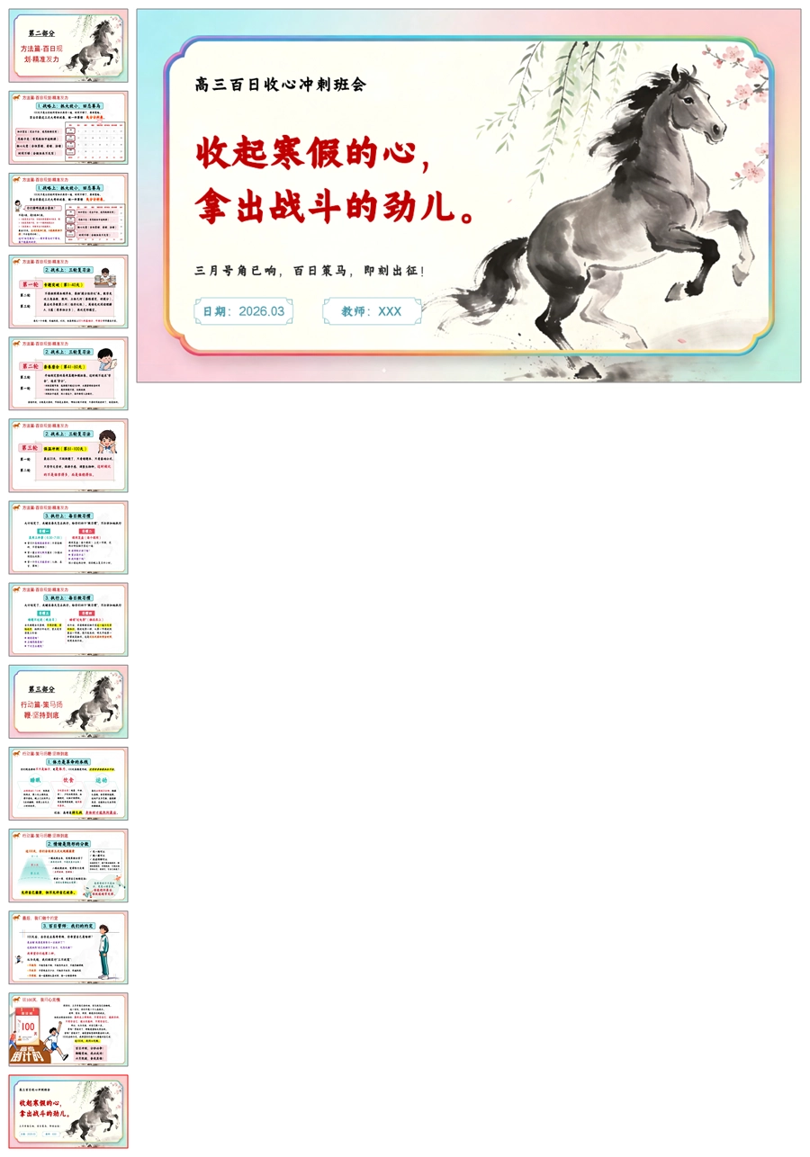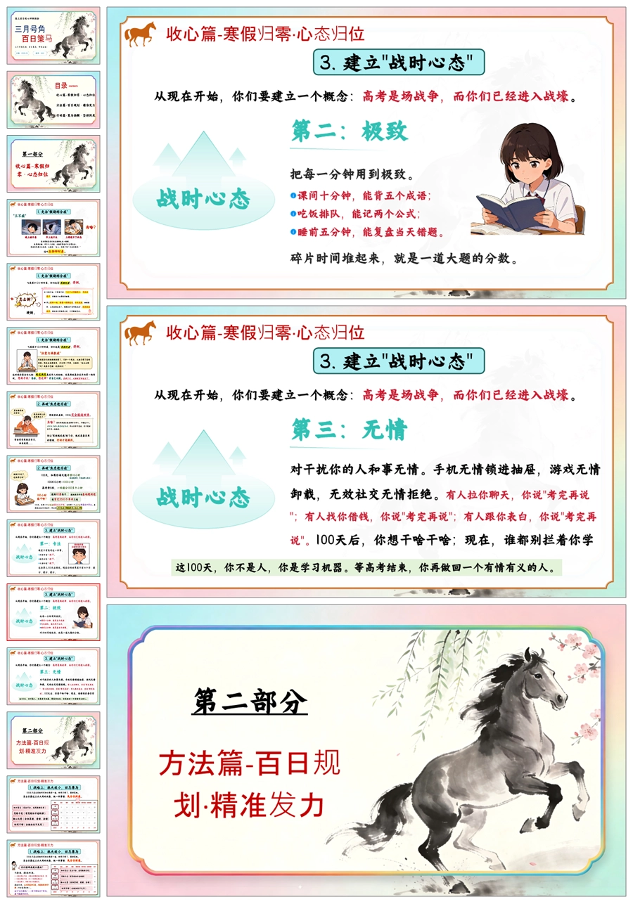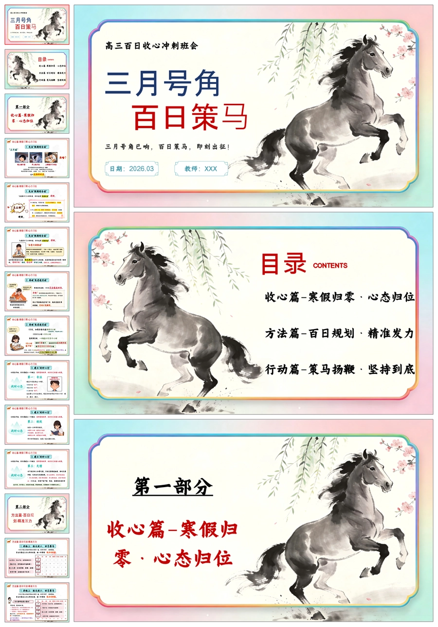【6008】《三月号角百日策马》高三百日冲刺主题班会PPT课件+教案