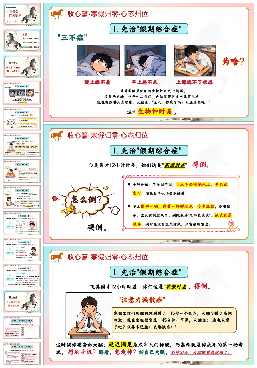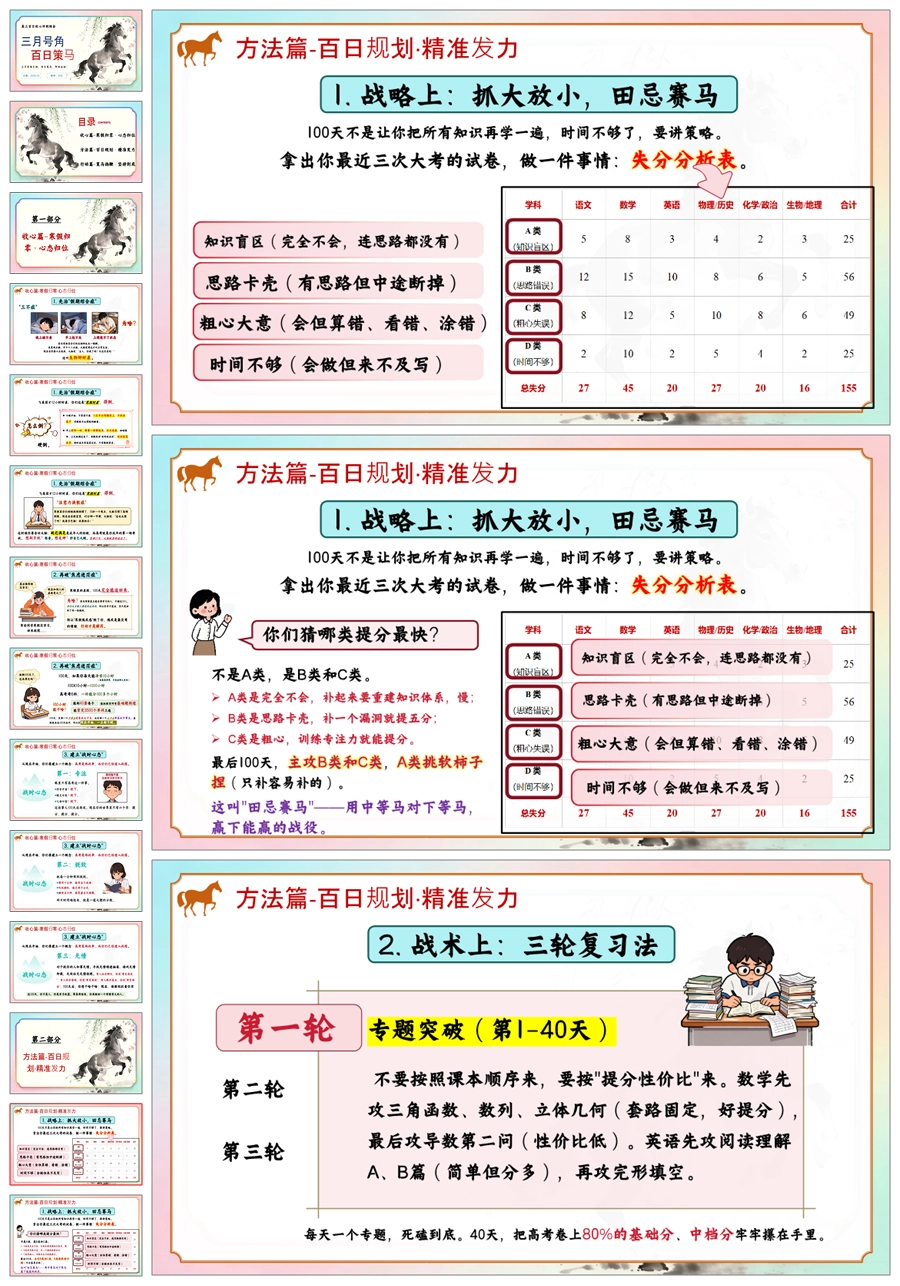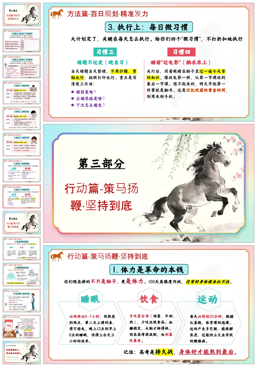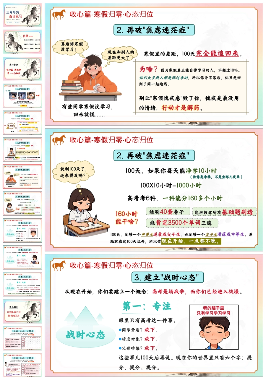 【6008】《三月号角百日策马》高三百日冲刺主题班会PPT课件+教案