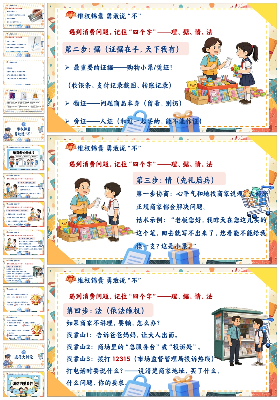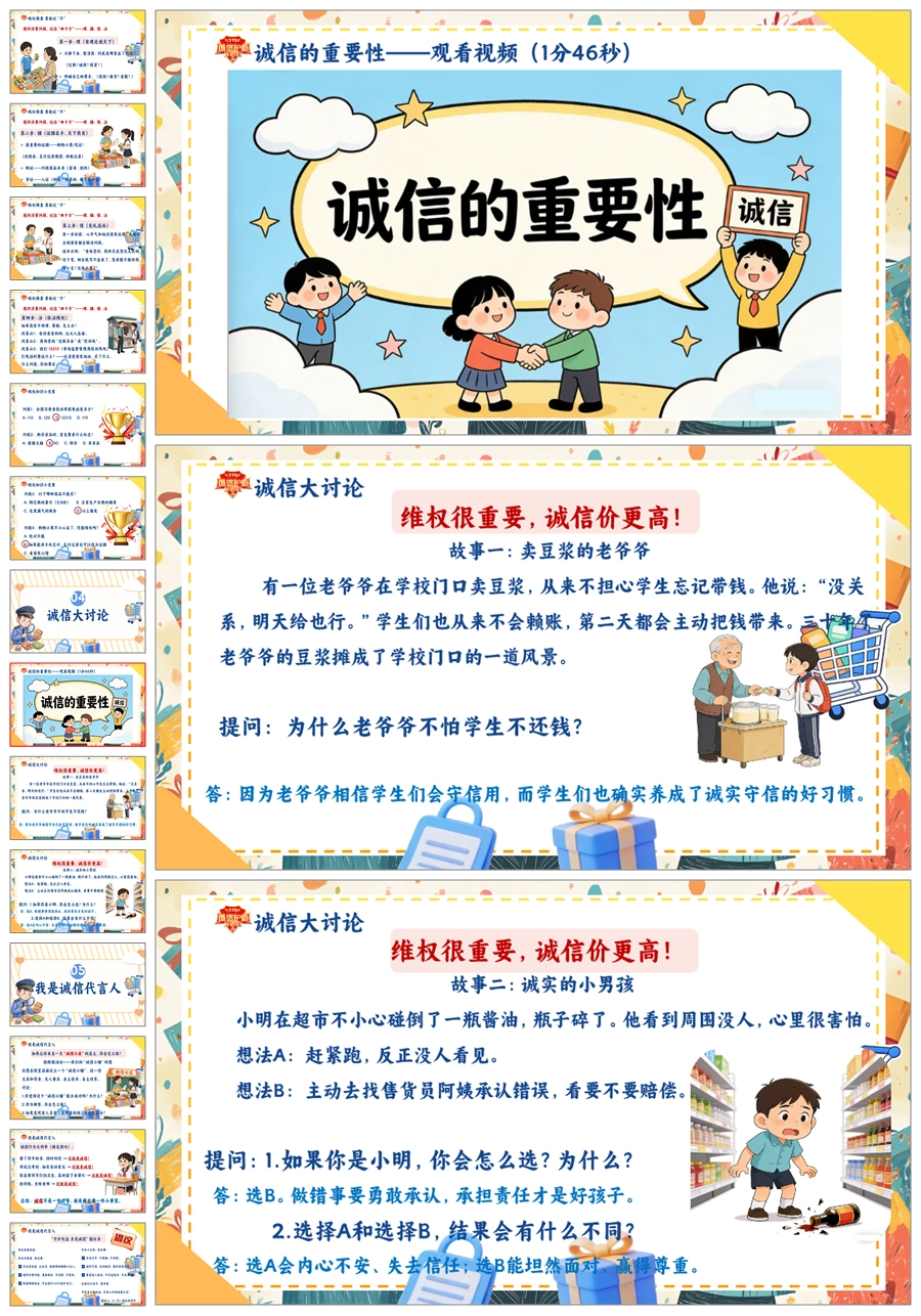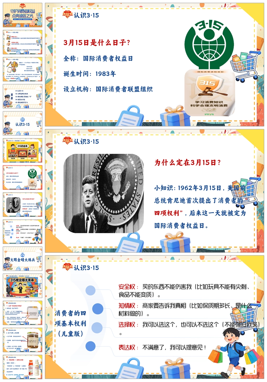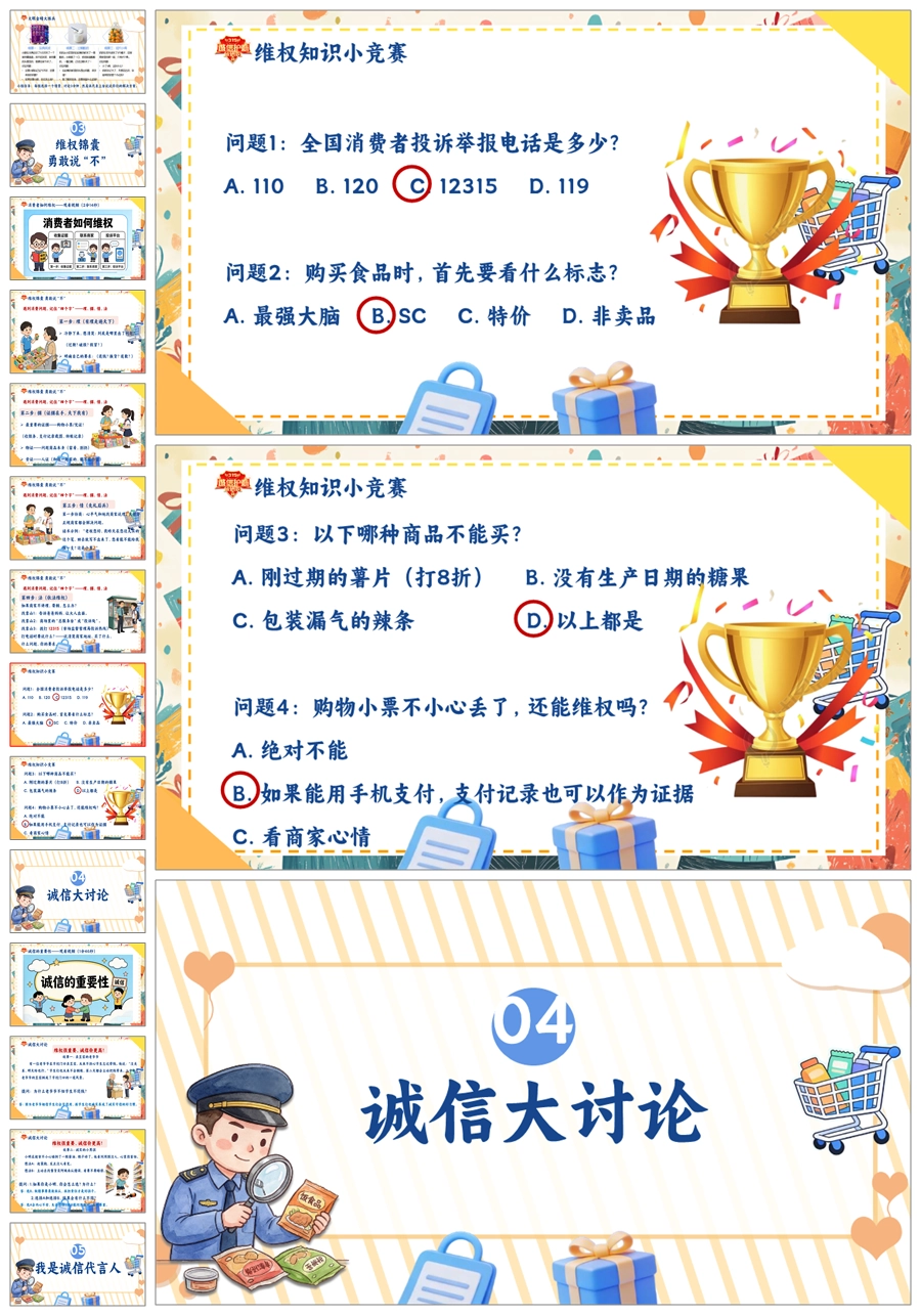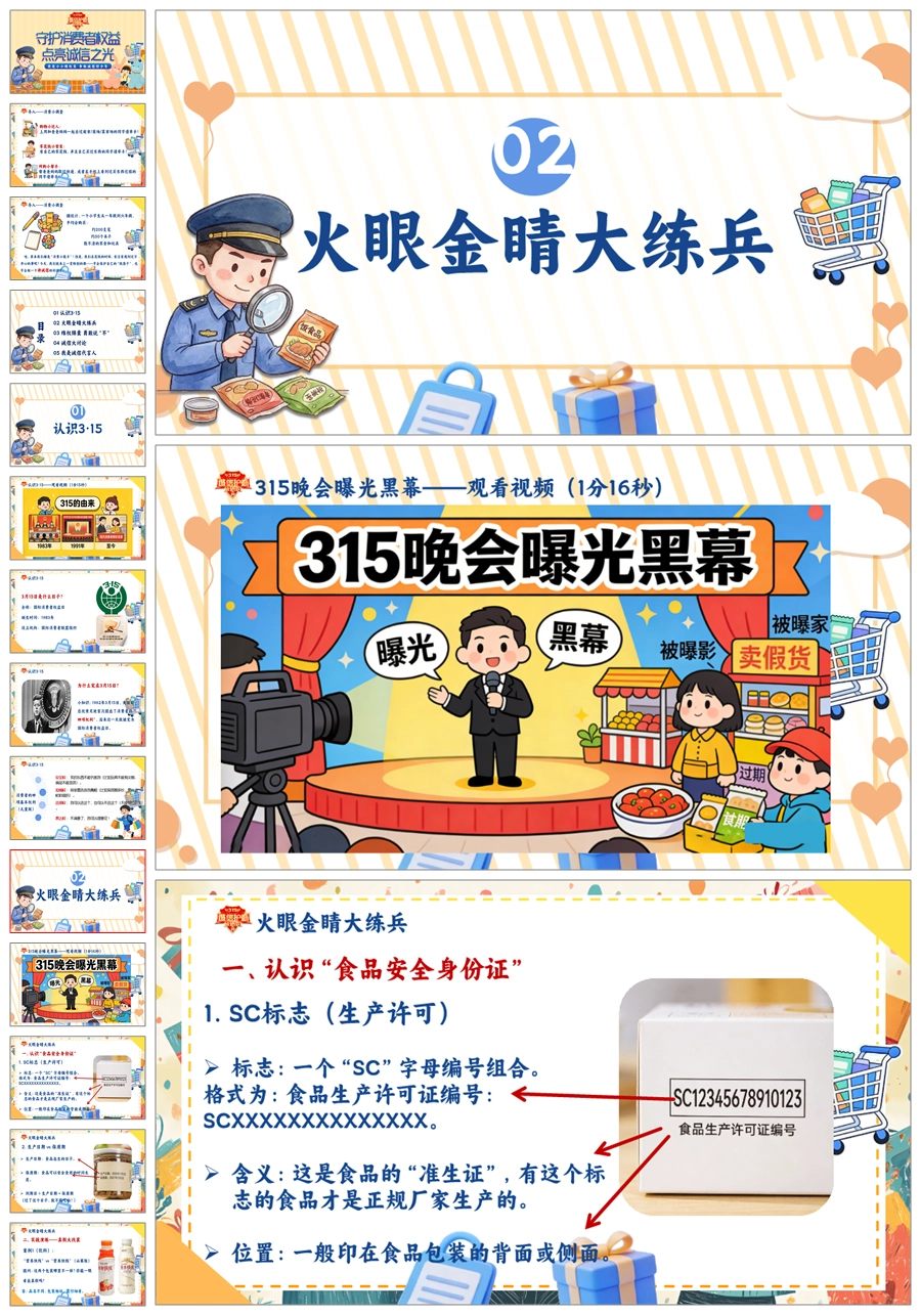【8673】《守护消费者权益点亮诚信之光》315消费者权益日宣传教育课件主题班会ppt课件+视频+教案+主持稿
