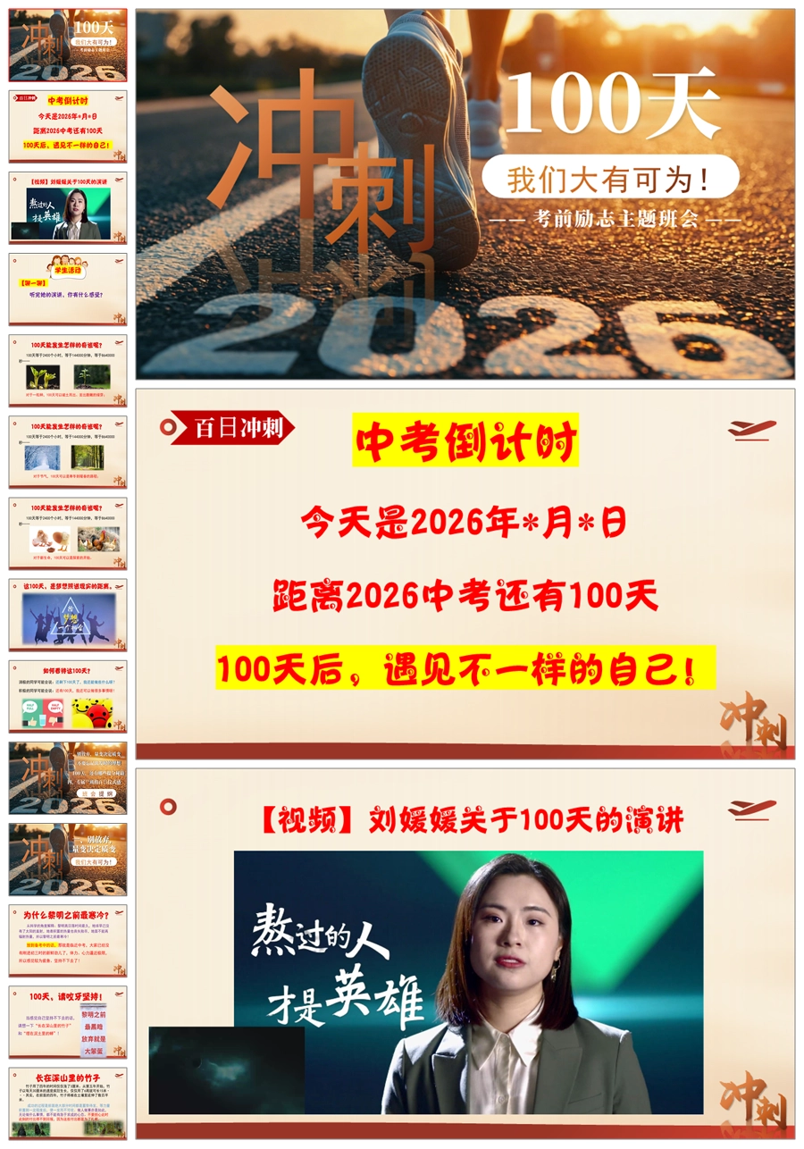 【8675】《中考100天我们大有可为》中考百日誓师考前冲刺PPT课件+视频+发言稿