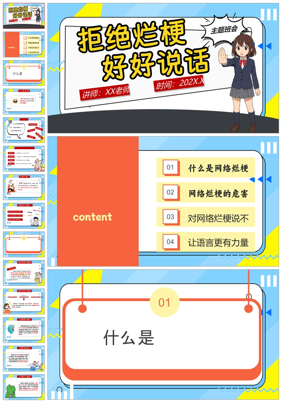 【6011】【通用】【文明教育】主题班会《拒绝烂梗,好好说话》PPT课件+教学设计