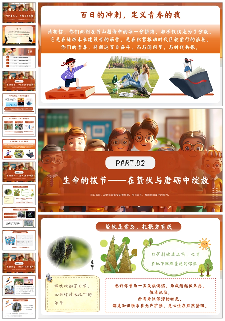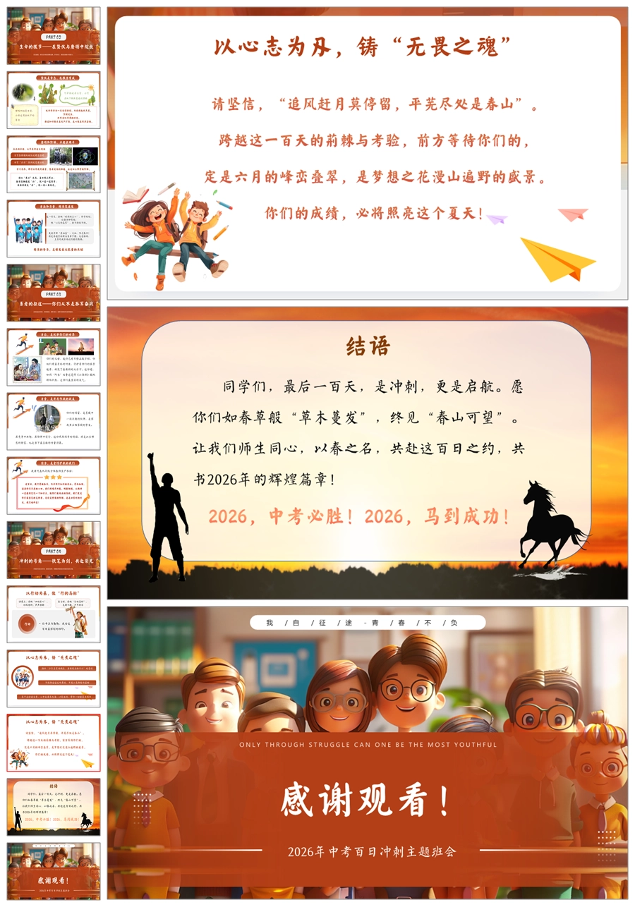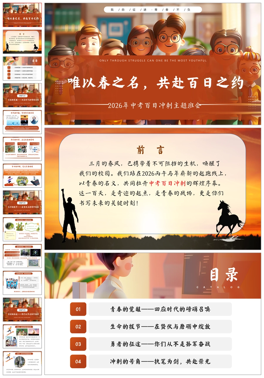 【6014】【初三】中考百日誓师主题班会《以春之名,共赴百日之约》PPT课件+发言稿
