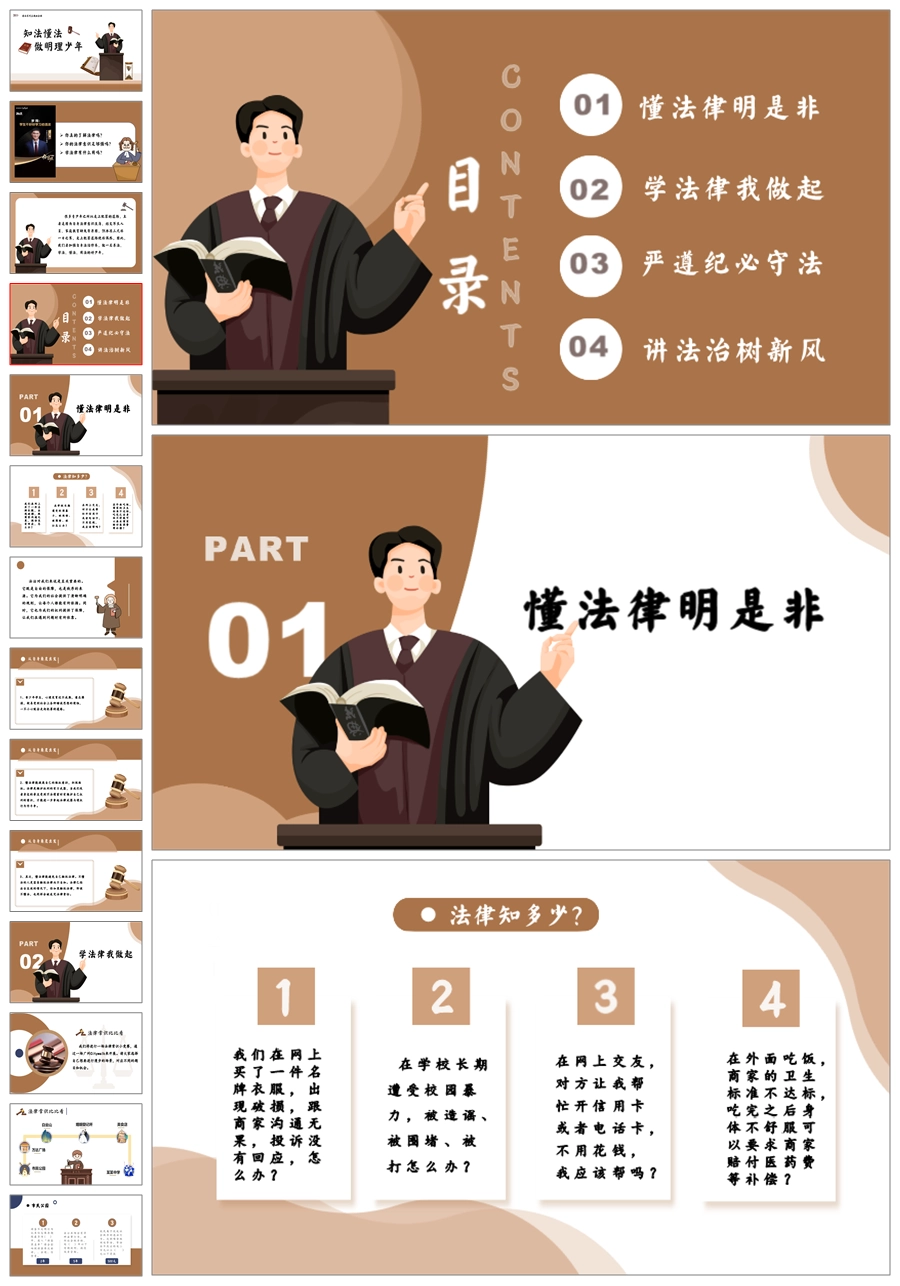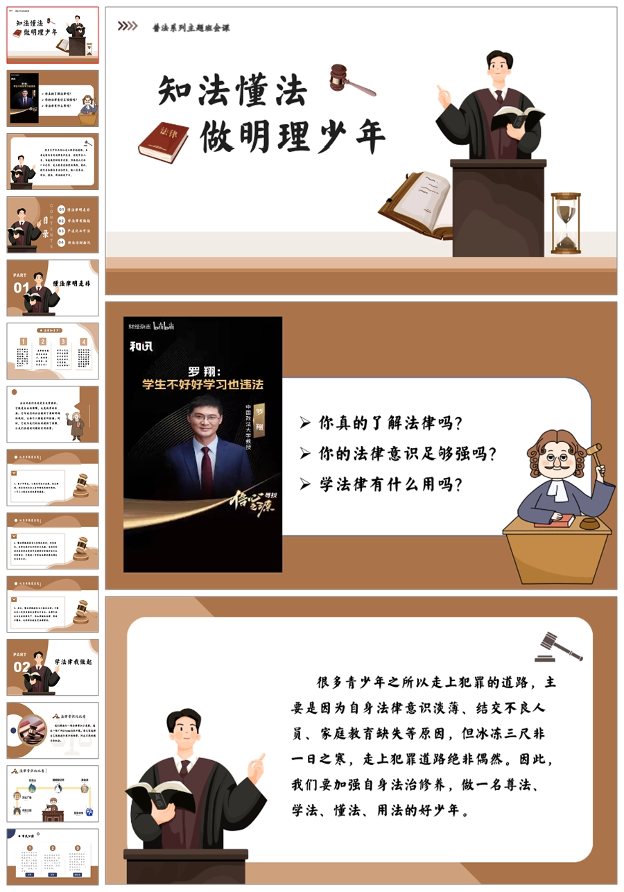 【6018】《知法懂法 做明理少年》普法教育主题班会PPT课件