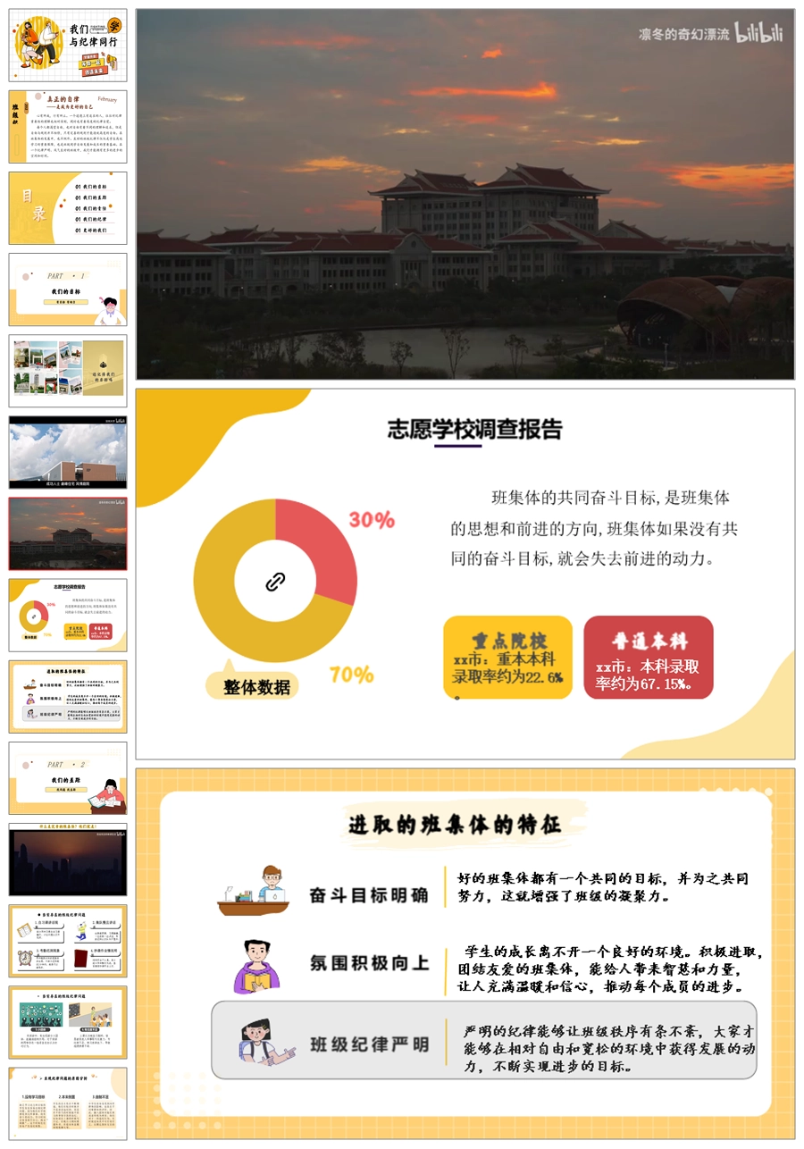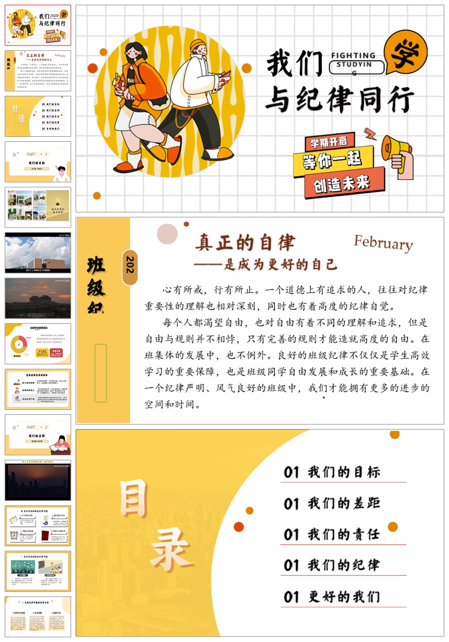 【6027】《我们与纪律同行》新学期班级纪律教育主题班会PPT课件+视频