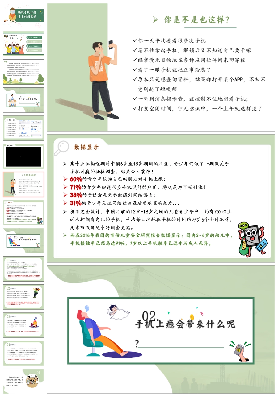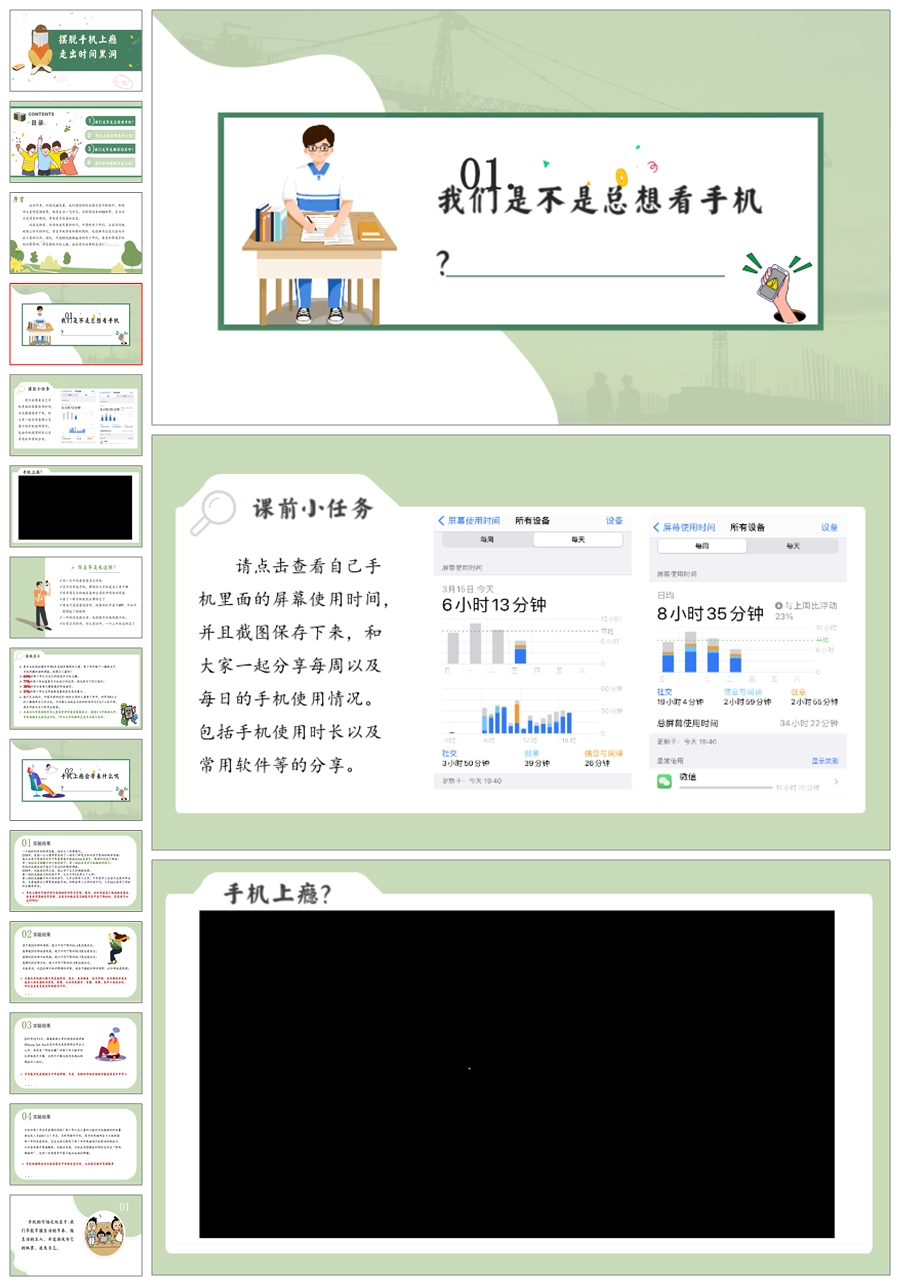 【6037】《摆脱手机上瘾 走出时间黑洞》手机话题主题班会PPT课件+视频