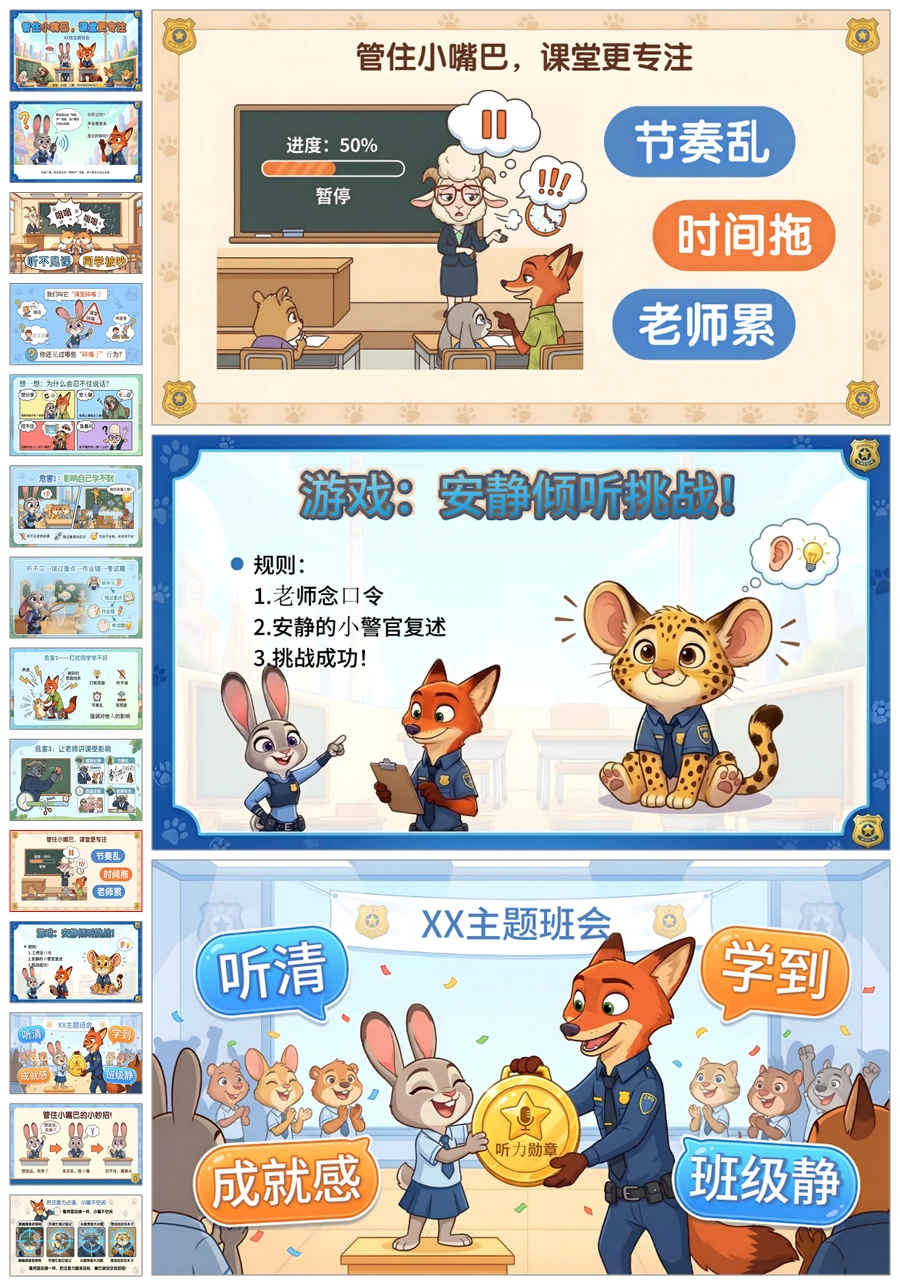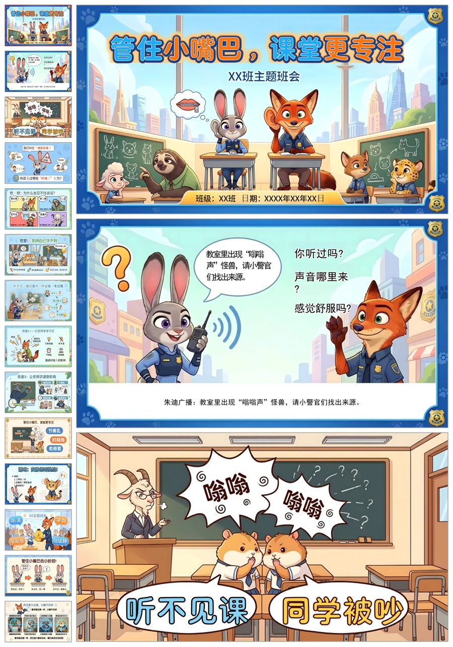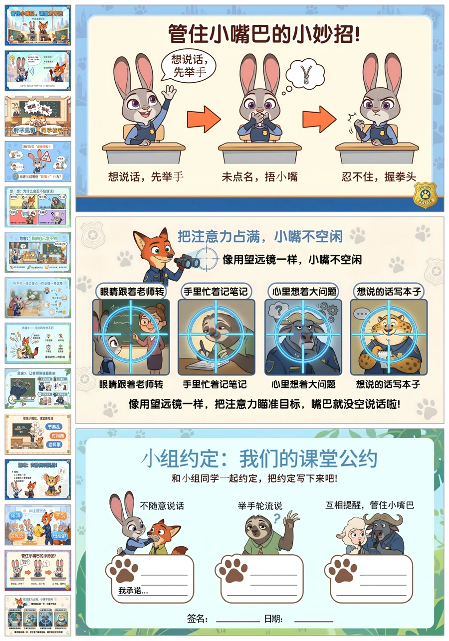 【6045】《管住小嘴巴,课堂更专注》课堂纪律学习习惯主题班会PPT课件+教案