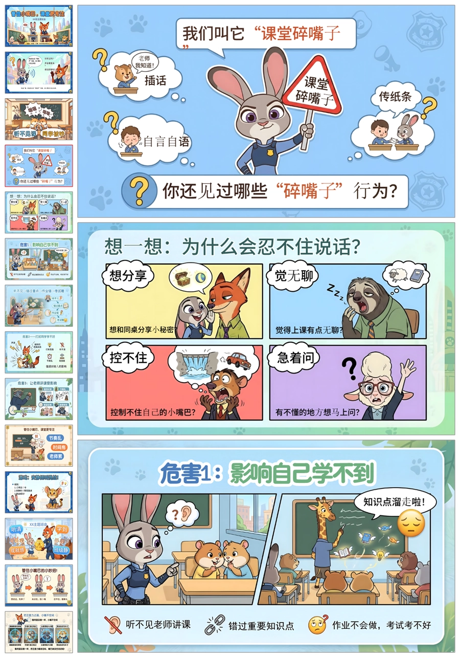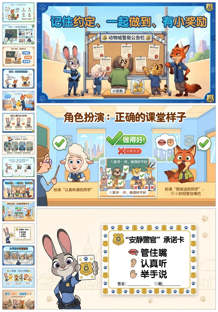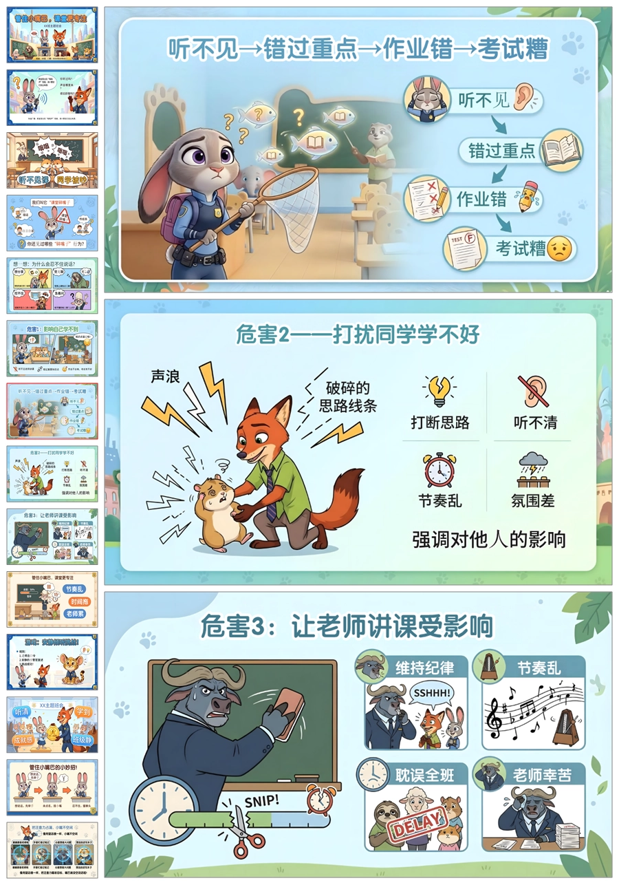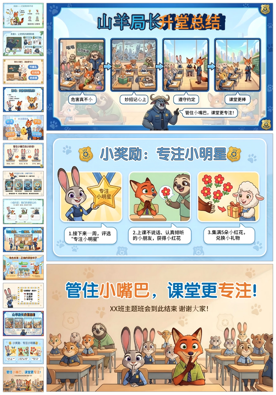【6045】《管住小嘴巴,课堂更专注》课堂纪律学习习惯主题班会PPT课件+教案