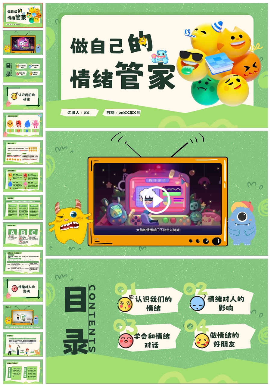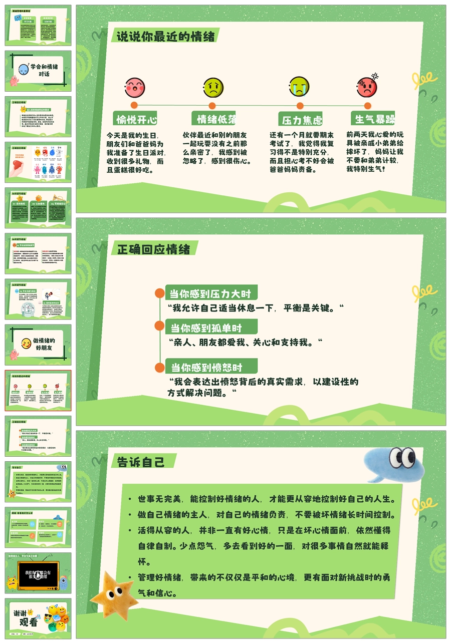 【6052】《做自己的情绪管家》情绪管理心理健康主题班会PPT课件+教案+视频