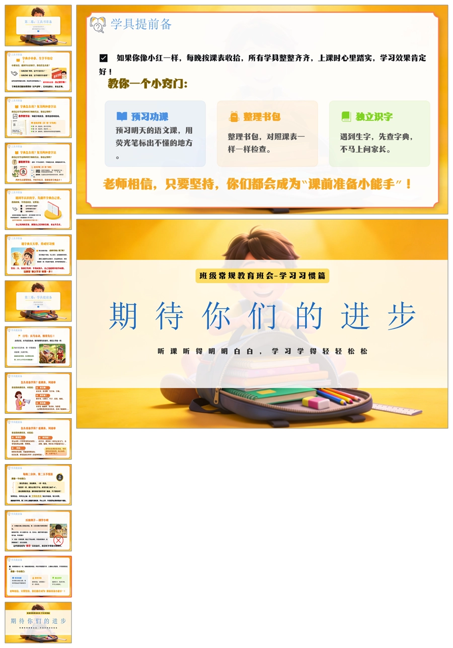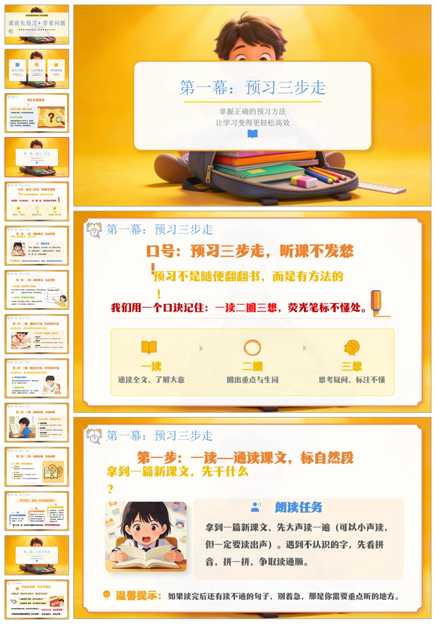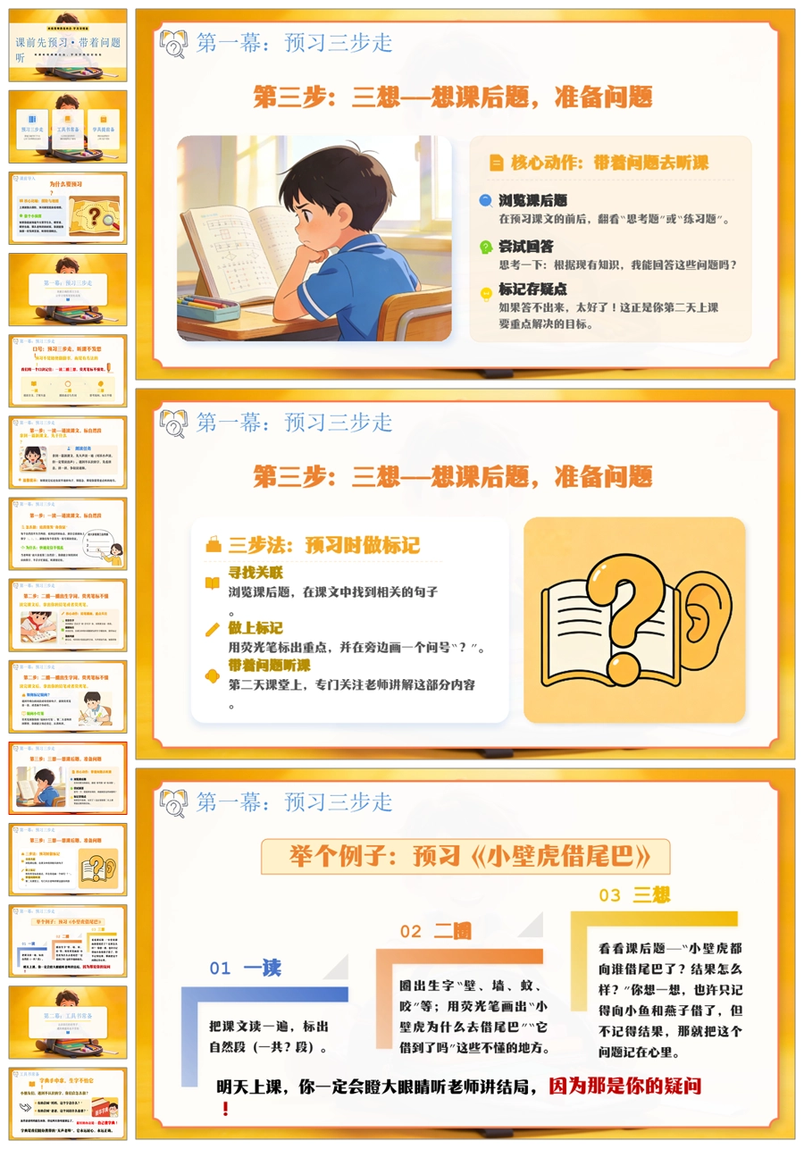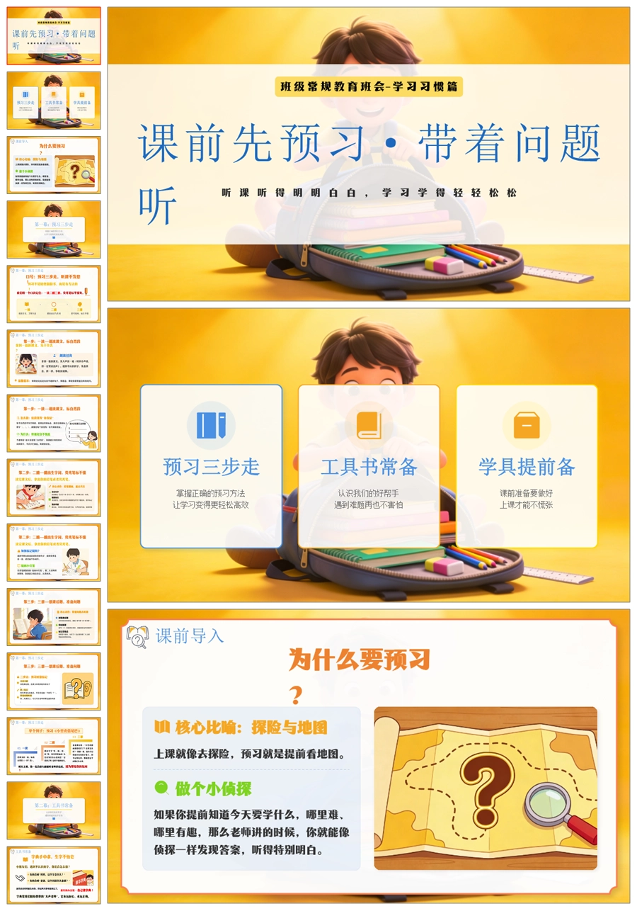 【6062】《课前先预习·带着问题听》学习指导小学主题班会PPT课件+教案