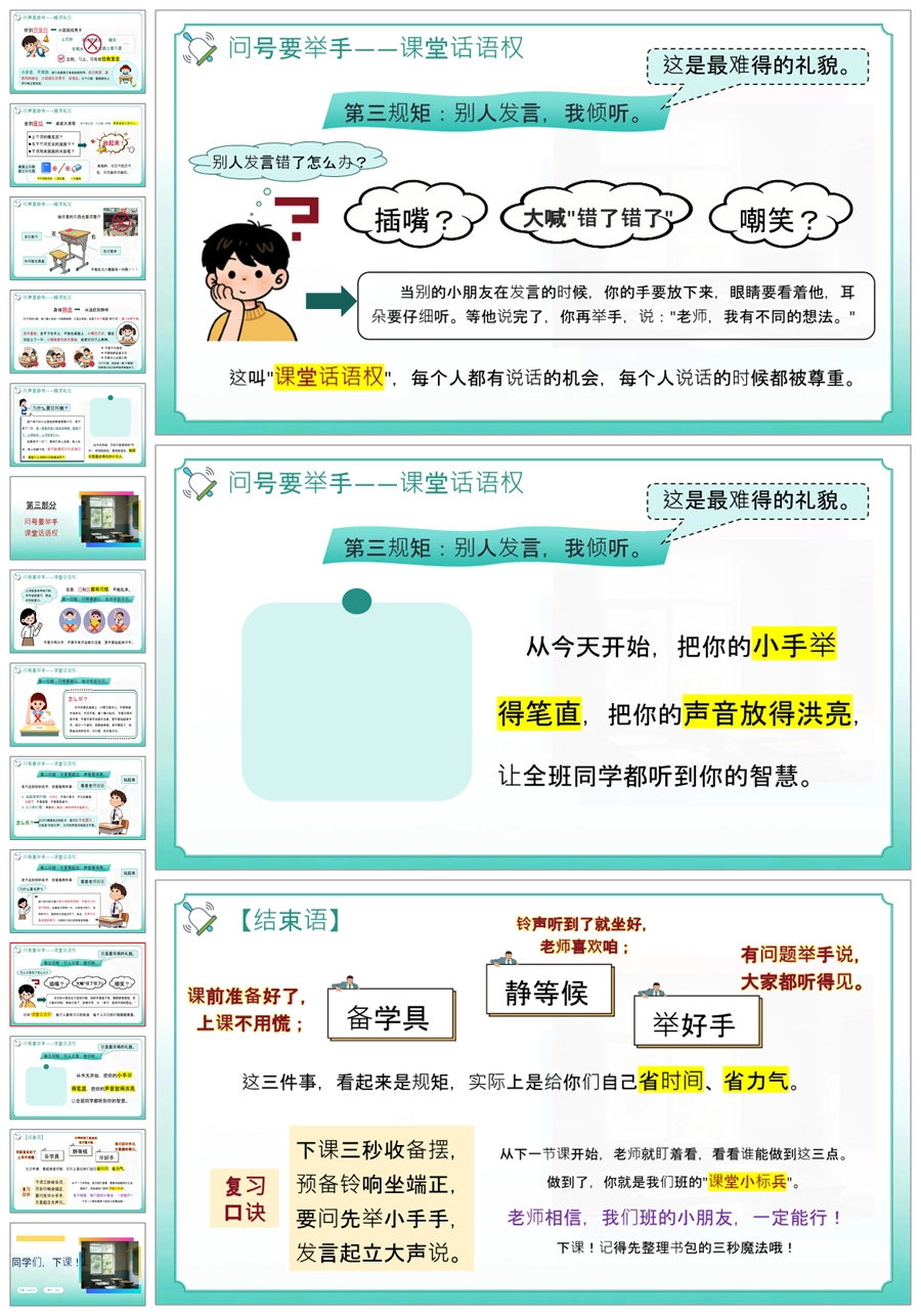 【6063】《课前备学具·铃响即静息》班级常规教育小学主题班会PPT课件+教案
