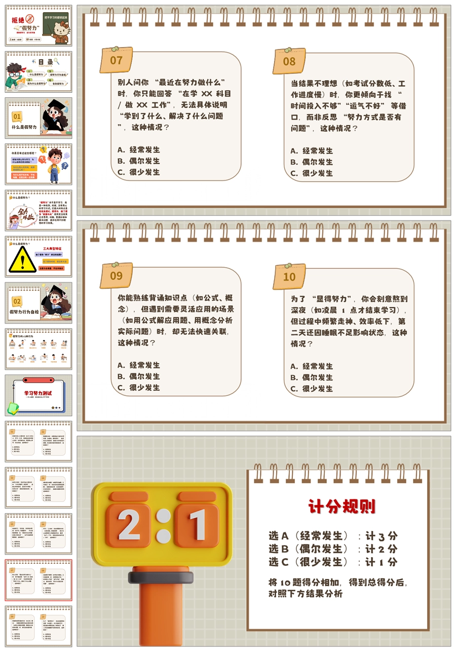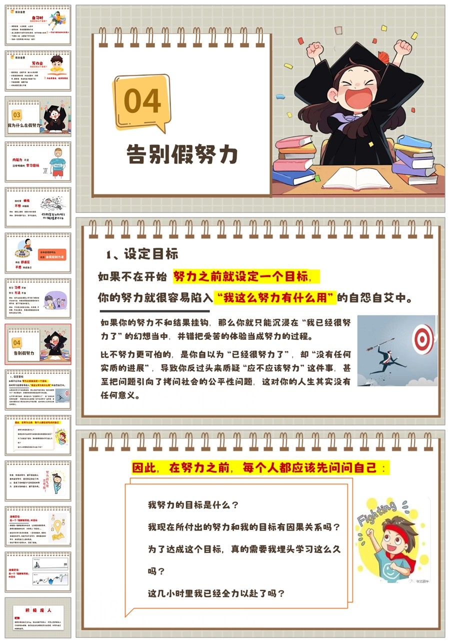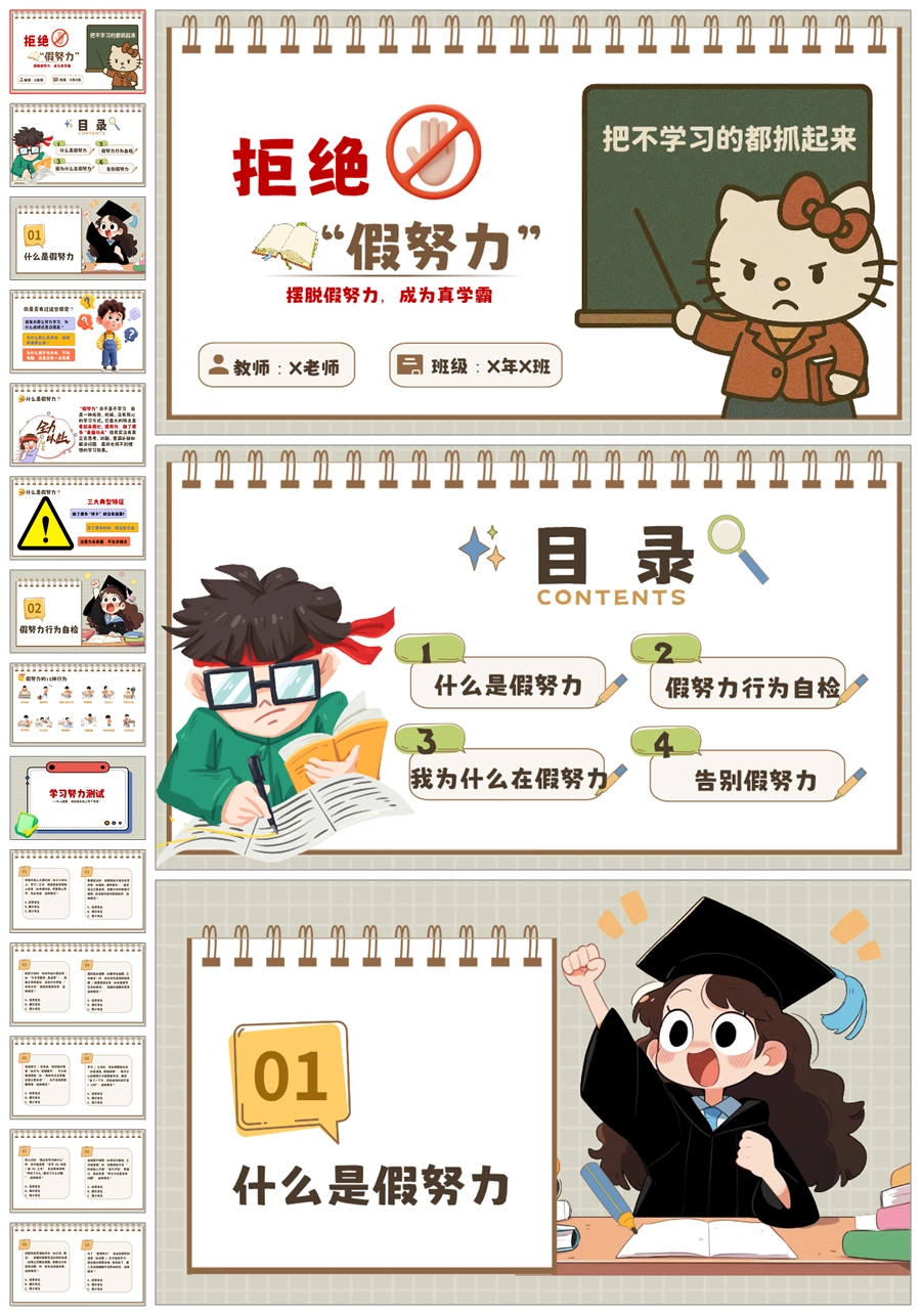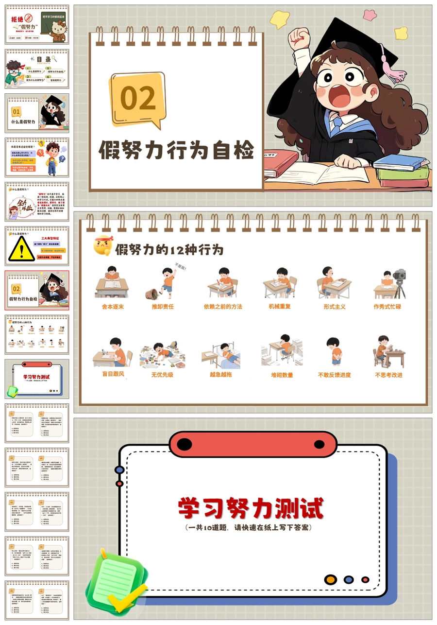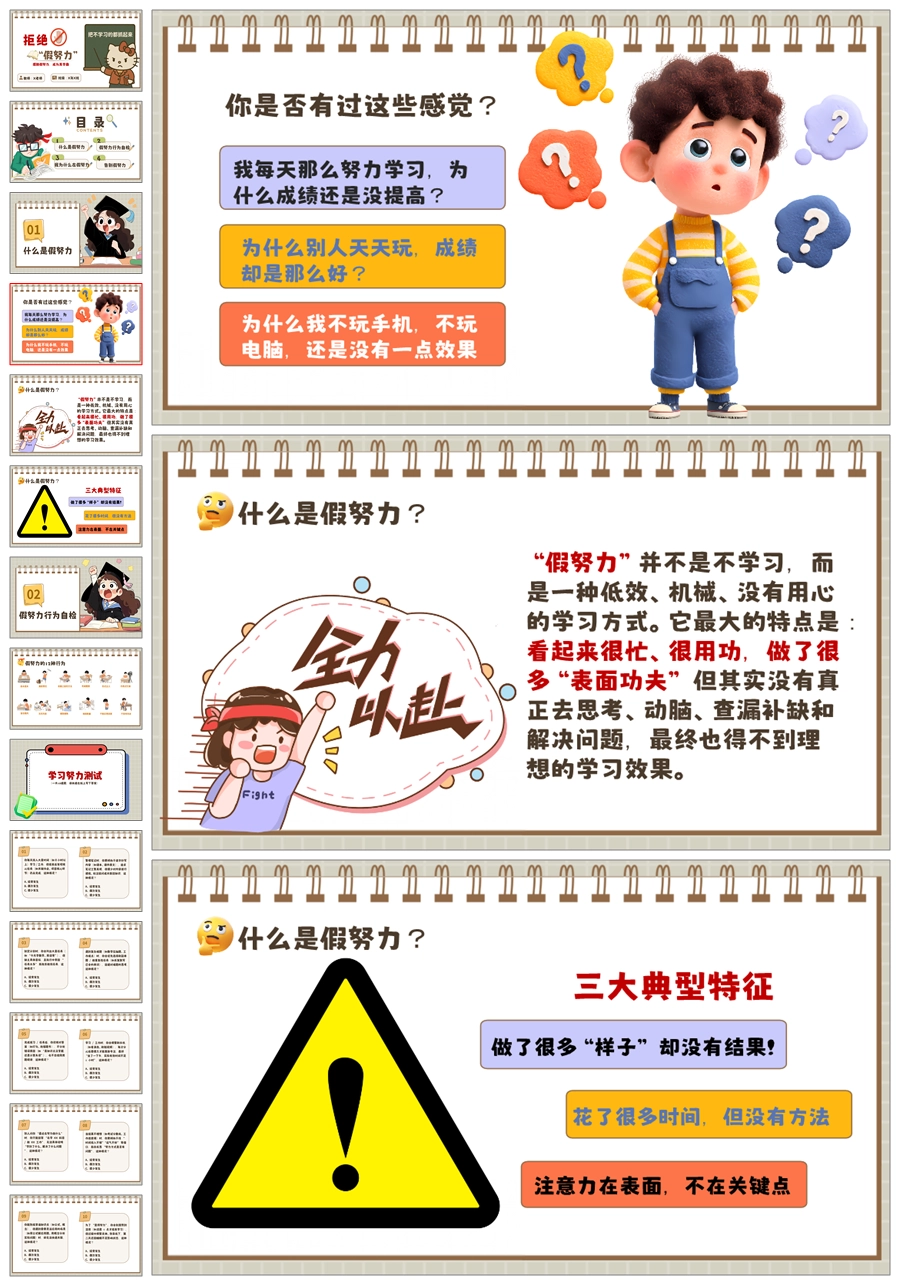 【6065】《拒绝假努力》学习指导励志教育主题班会PPT课件+教案