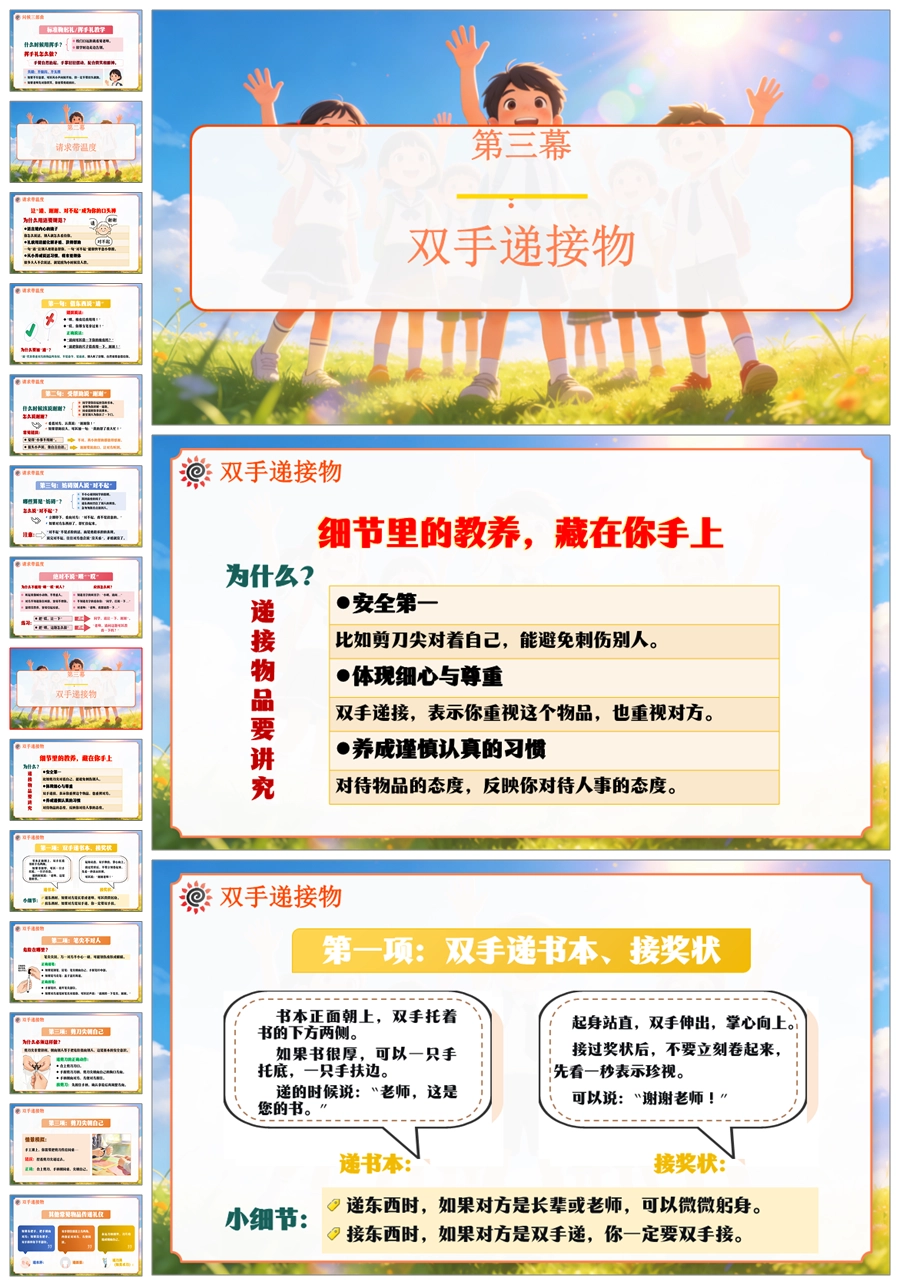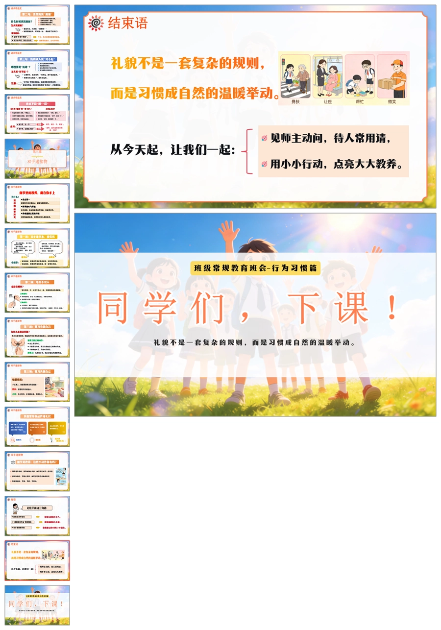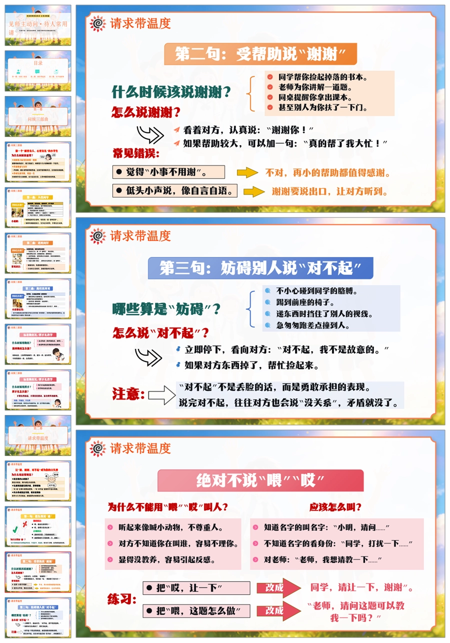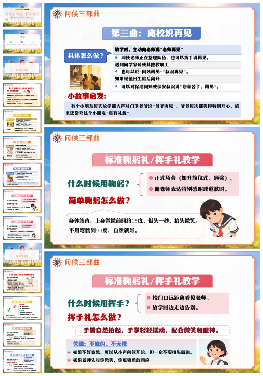 【6067】《见师主动问·待人常用请》班级常规教育文明礼仪小学主题班会PPT课件+教案
