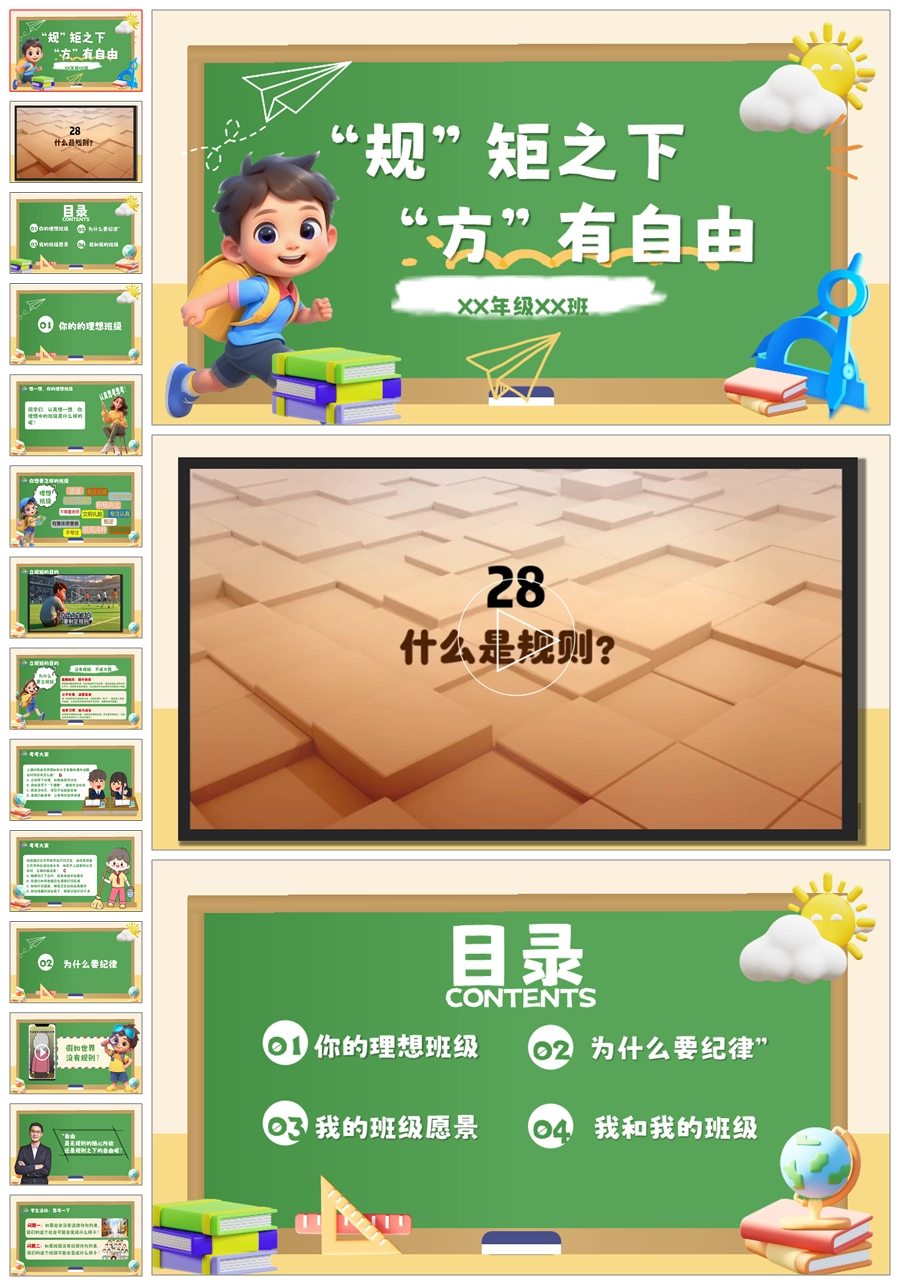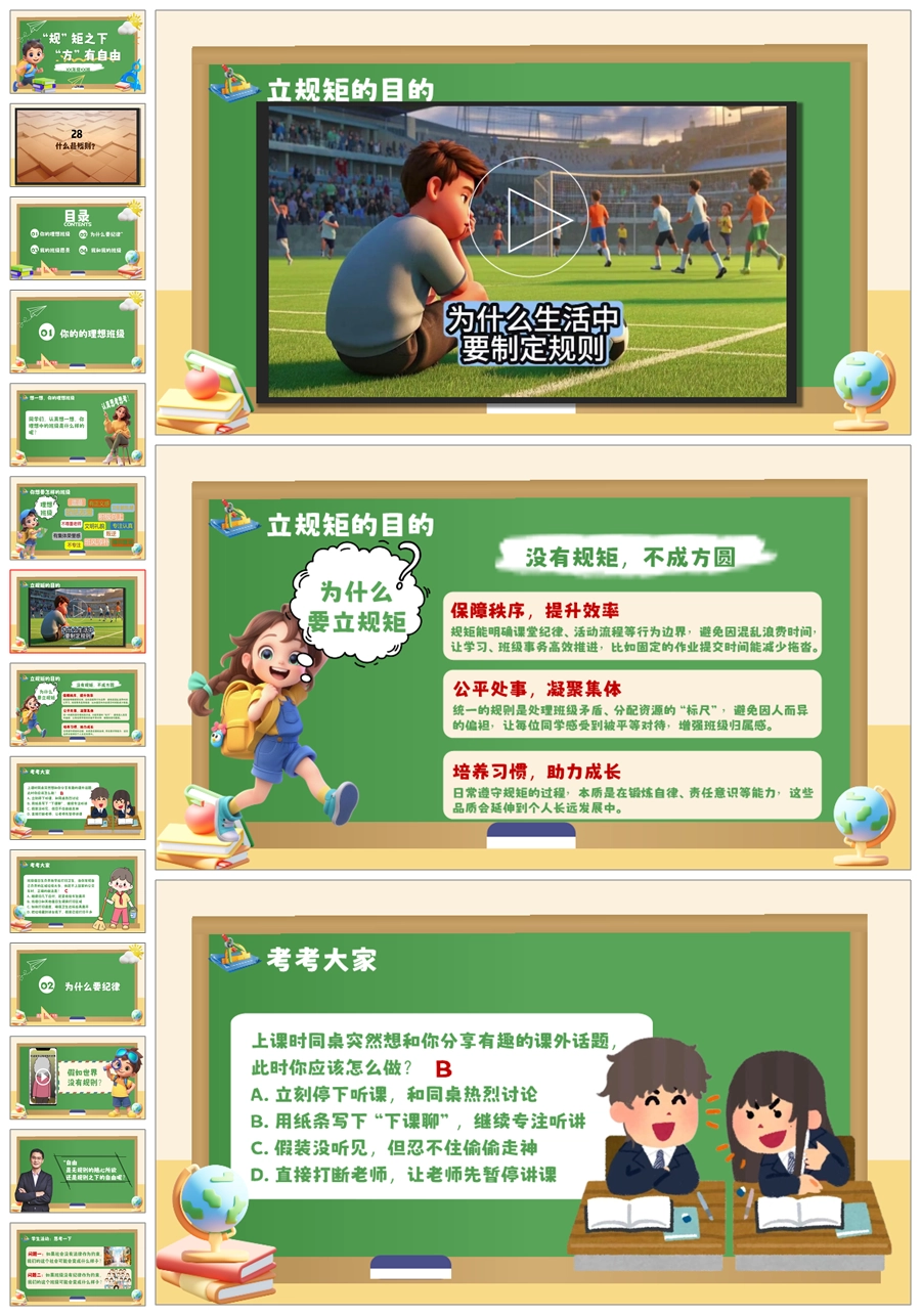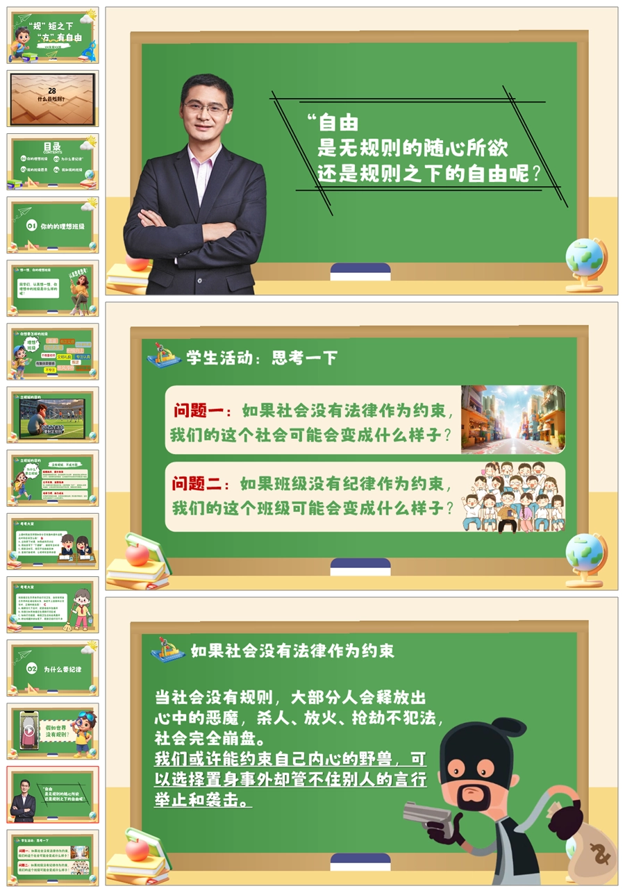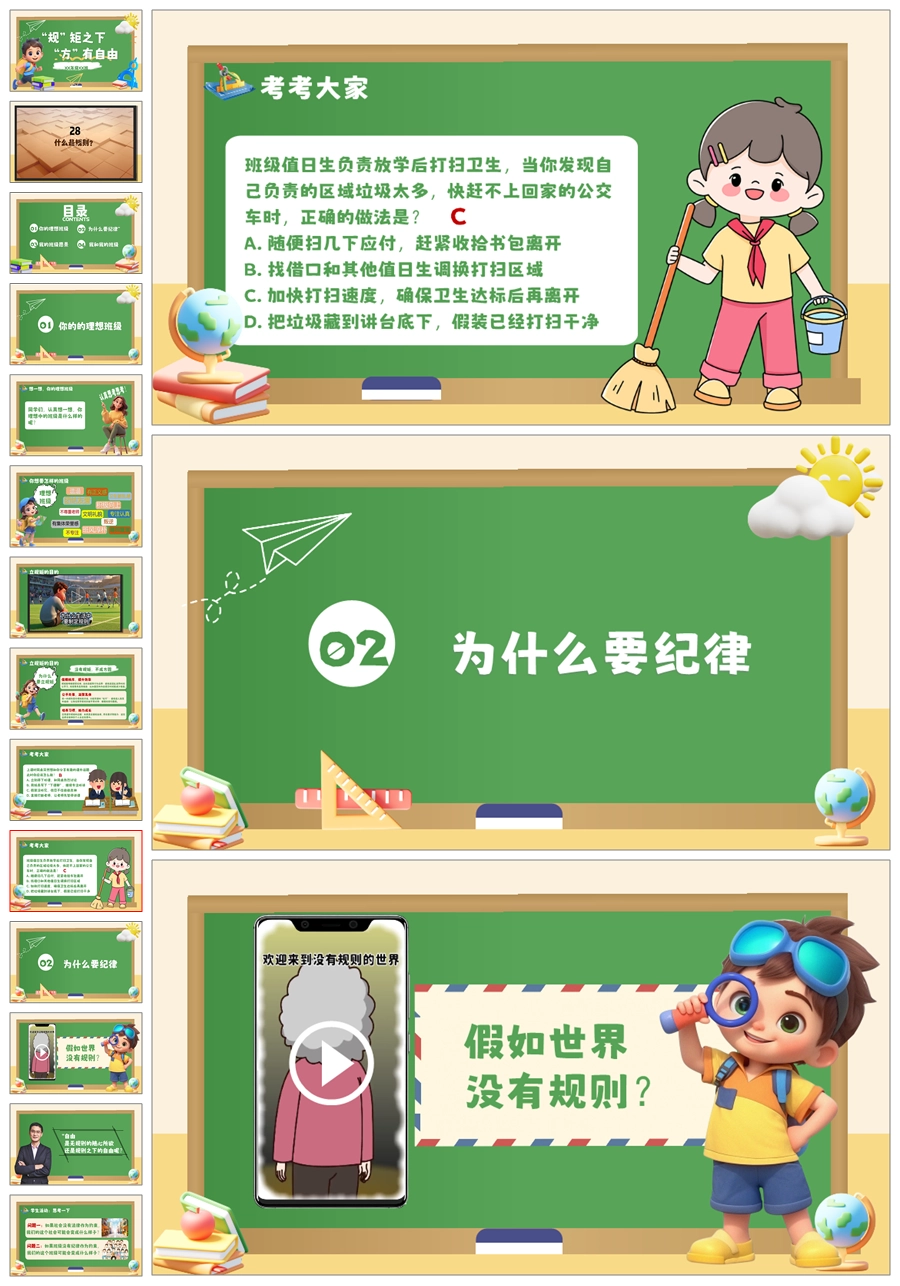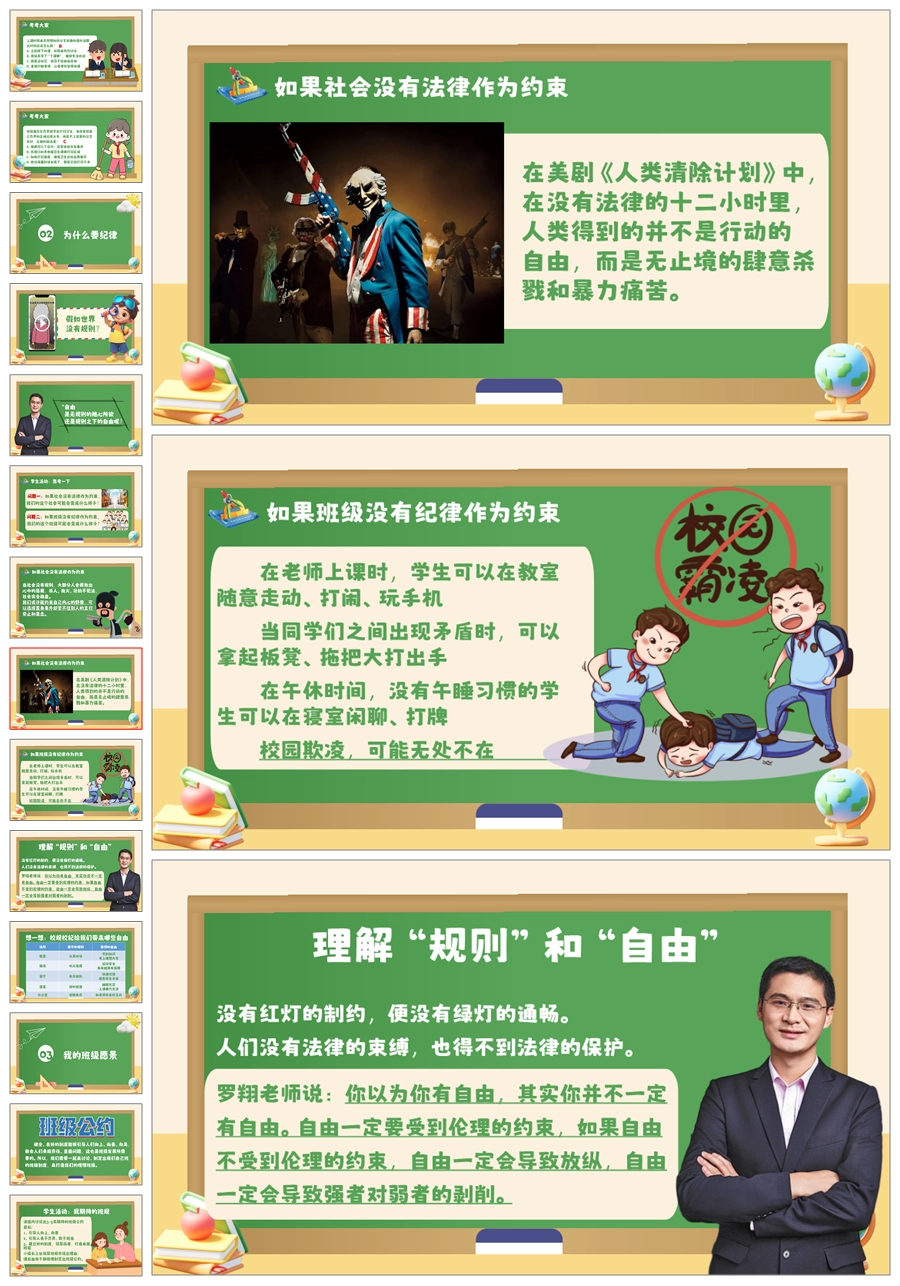 【6069】《规矩之下方有自由》纪律教育主题班会PPT课件+教案+视频