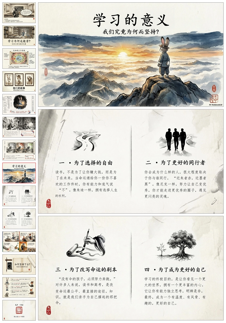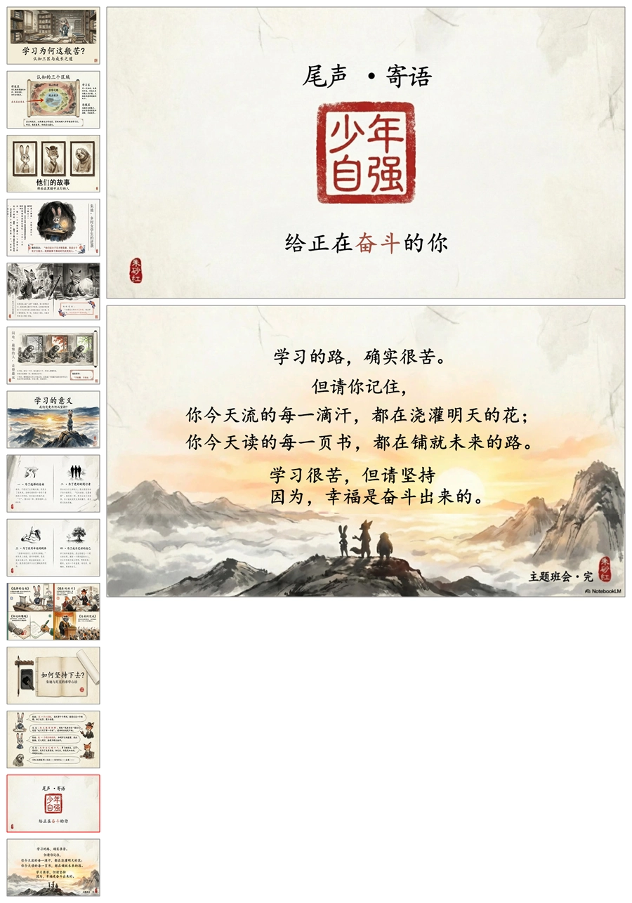 【6076】【通用】励志教育主题班会《学习很苦但请坚持》学习的意义PPT课件+教案